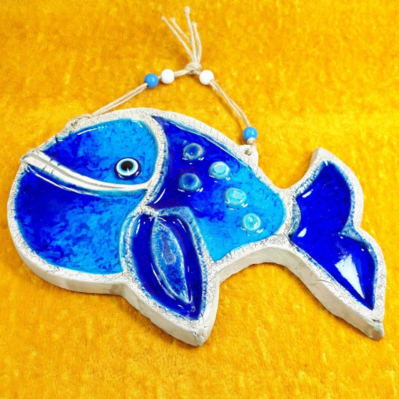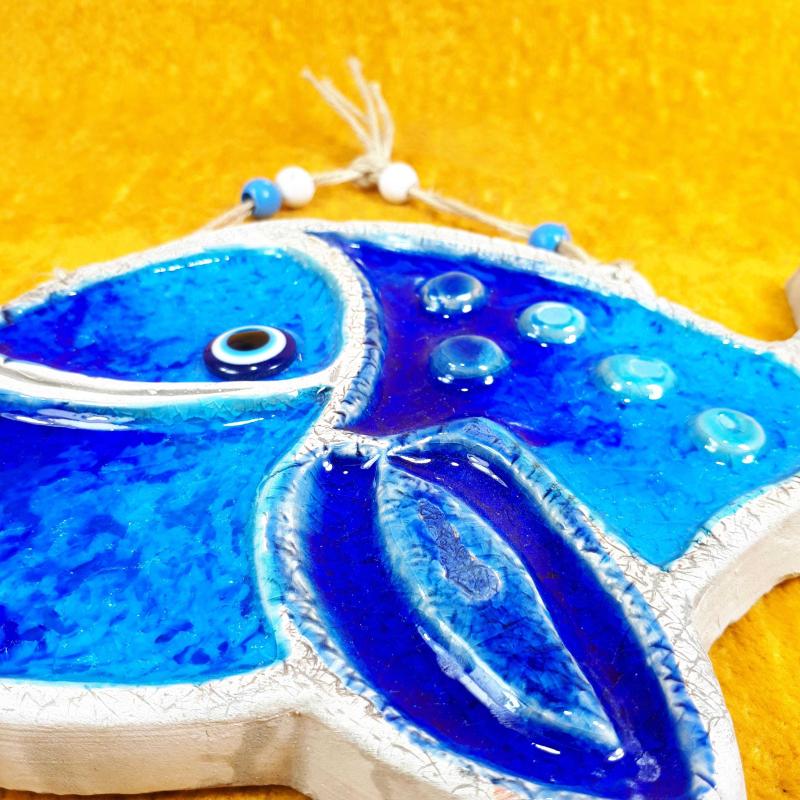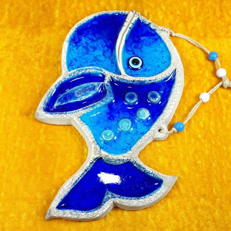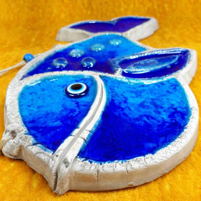 VINTAGE EL YAPIMI MİNELİ SERAMİK BALIK NAZARLIK PANO başlıklı antika/koleksiyon objesi Türkiye menşe’lidir. 2000 ve sonrası dönemine aittir.