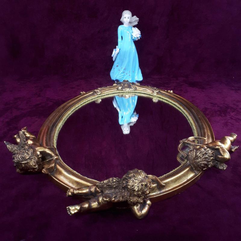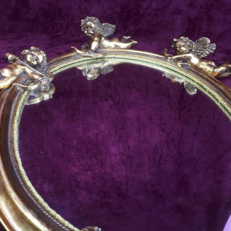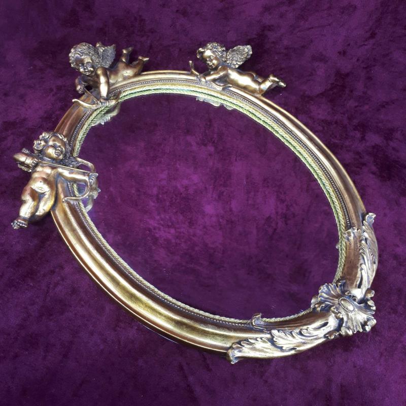VINTAGE EROSLU OVAL FORMLU ALTIN VARAK ÇERÇEVELİ DUVAR AYNASI başlıklı antika/koleksiyon objesinin menşei belirtilmemiştir. 1980-1999 arası dönemine aittir.