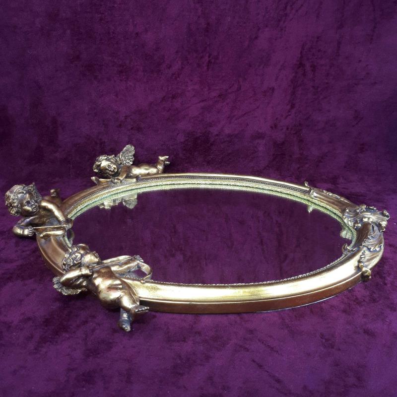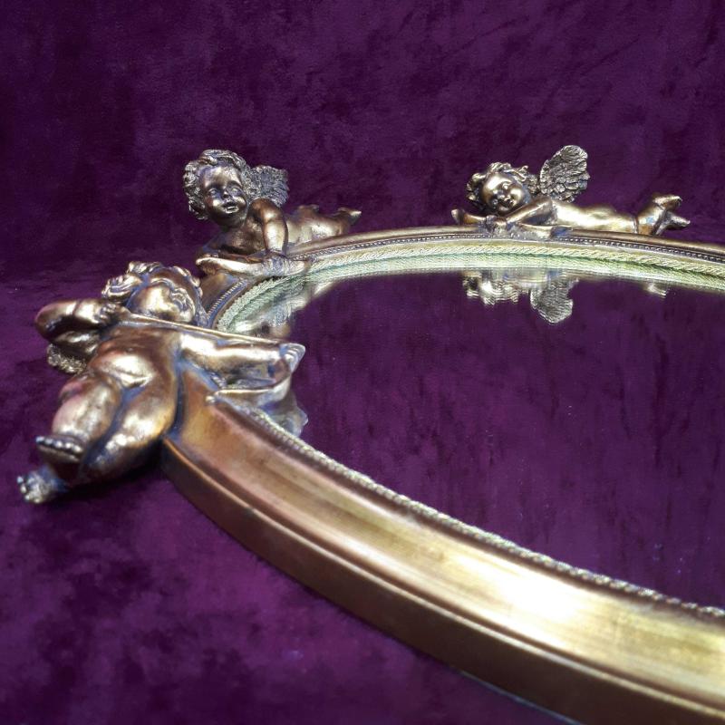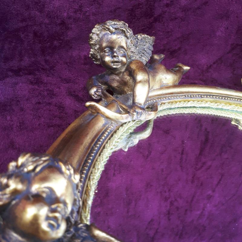 1990 LARDAN . ESKİTME PATENELİ ALTIN VARAKLI , SUNİ REÇİNE VE MERMER TOZUNDAN MAMUL ÇERÇEVENİN BOYU EROS FİGÜRLERLE BERABER EN FAZLA 49 cm , GENİŞLİĞİ EN FAZLA 41 cm . FLOTAL AYNADA PEK BELLİ OLMAYAN BİRKAÇ KÜÇÜK ÇİZİK VE ESKİLİK NEDENİYLE YALDIZLARDA RÖTUŞLA KAPATILMIŞ HAFİF KULLANIM İZLERİ VAR . ÇERÇEVEYE OTURAN AYNA KENARLARI ÖN YÜZDEN İBRİŞİMLE KAPATILMIŞ . DEKORATİF .