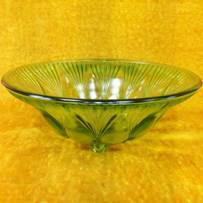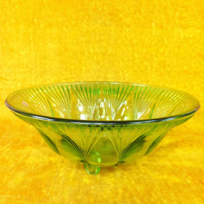 VINTAGE FISTIKÎ YEŞİL RENKLİ 3 AYAKLI YUVARLAK CAM ÇANAK KASE başlıklı antika/koleksiyon objesinin menşei belirtilmemiştir. 1980-1999 arası dönemine aittir.