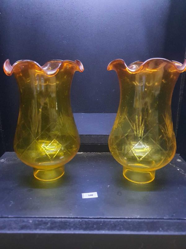 Vintage Gaz lambası camı orijinal amber sarısı renkli dalgalı ağızlı 2 li 16 cm 1960 lar