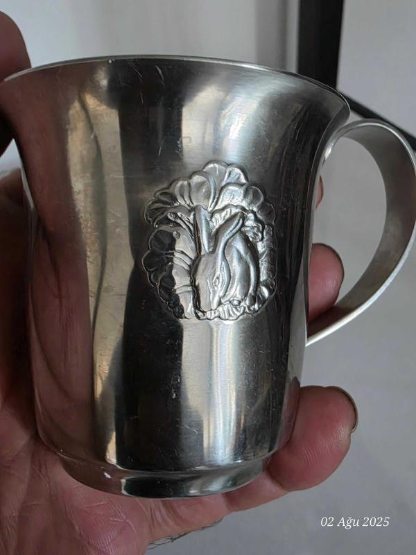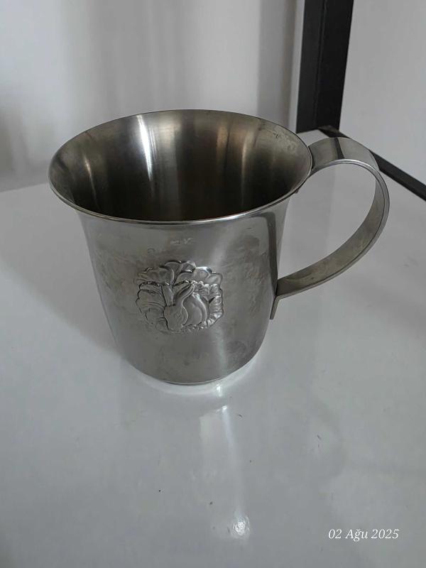 VİNTAGE Gero Zilmeta tavşanlı paslanmaz çelik çocuk kupası 60'lar 8 CM BOYUNDA başlıklı antika/koleksiyon objesi Avrupa menşe’lidir. Objenin ait olduğu dönem bilinmeketedir.