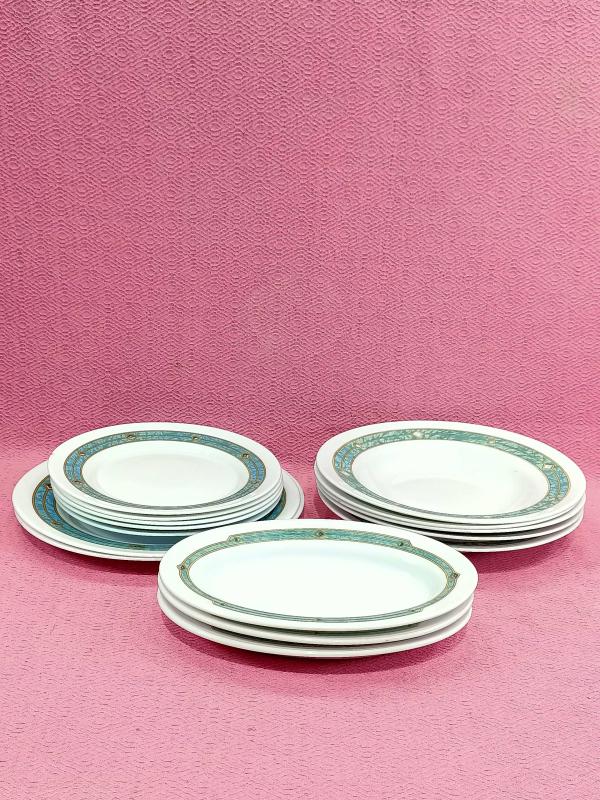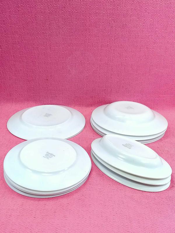 1990 LARDAN veya 2000 LERDEN . 2 ADET BÜYÜK BOY DÜZ TABAK ÇAPLARI 25 cm , 5 ADET ORTA BOY DÜZ TABAK ÇAPLARI 20 cm , 5 ADET BÜYÜK BOY ÇUKUR TABAK ÇAPLARI 24 cm , 3 ADET OVAL TABAK 14 X 22 cm . ORTA BOY DÜZ TABAKLARIN BİR TANESİNİN KENARINDA UFAK BİR ATIK VAR , BUNUN HARİCİNDE HEPSİ KUSURSUZ .