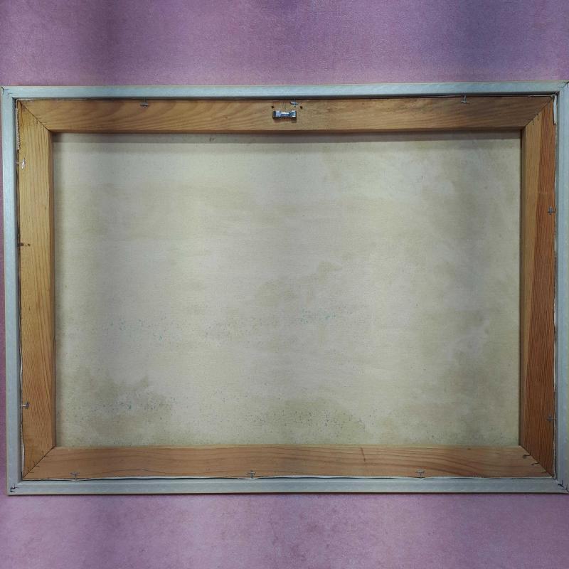 1990 LARDAN . 70 x 50 cm TUVAL ÜZERİNE YAĞLIBOYA , ÇERÇEVELİ ÖLÇÜLERİ 74 x 54 cm . ESKİTME RETRO GÖRÜNÜMLÜ GÜMÜŞ YALDIZ ÇERCEVELİ . KUSURSUZ .