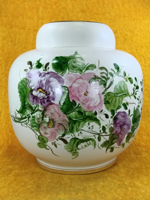 1980 LERDEN . YÜKSEKLİK 24 cm . ÇİFT TARAFLI EL BOYAMA ÇİCEKLER GÖRSELLİ . SANATÇI İMZALI VE İMALAT NUMARALI . KUSURSUZ .