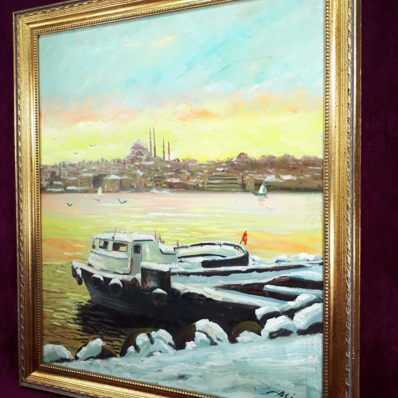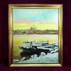 VINTAGE KARLAR ALTINDA İSTANBUL HALİÇ MANZARALI ALTIN VARAK AHŞAP ÇERÇEVELİ BÜYÜK EBAT İMZALI YAĞLIBOYA RESİM başlıklı ürün, Antika-Koleksiyon, Hobi-Sanat > Sanat Eserleri > Resim > Yağlıboya kategorisinde İkinci El olarak satışa sunulmuştur.