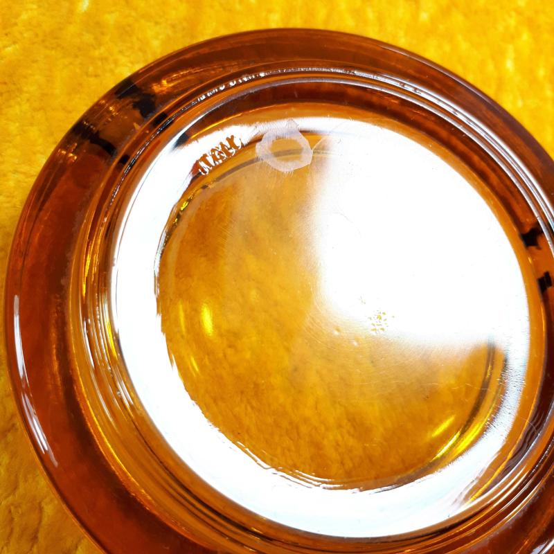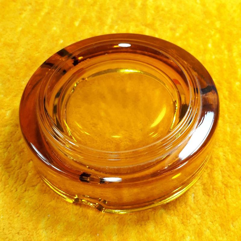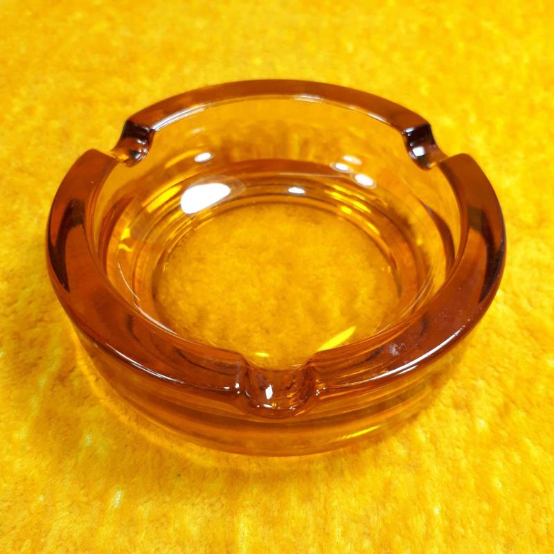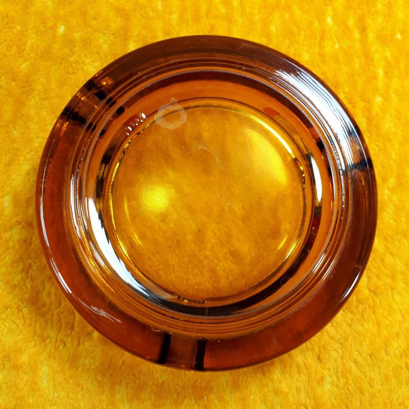 VINTAGE KEHRİBAR RENKLİ CAM YUVARLAK KÜL TABLASI MADE IN ITALY başlıklı antika/koleksiyon objesi Avrupa menşe’lidir. 1960-1979 arası dönemine aittir.