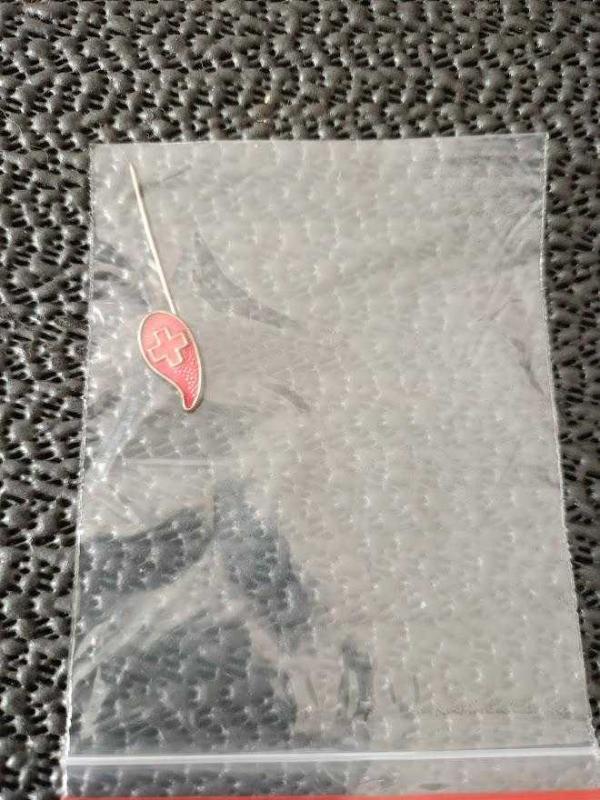 VINTAGE KIZILHAÇ KAN BAĞAŞI İĞNELİ YAKA ROZETİ. başlıklı antika/koleksiyon objesi Avrupa menşe’lidir. 1960-1979 arası dönemine aittir.