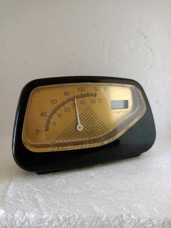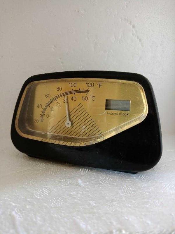 VINTAGE MASA ÜSTÜ SAATLİ TERMOMETRE.. başlıklı antika/koleksiyon objesinin menşei belirtilmemiştir. 1960-1979 arası dönemine aittir.