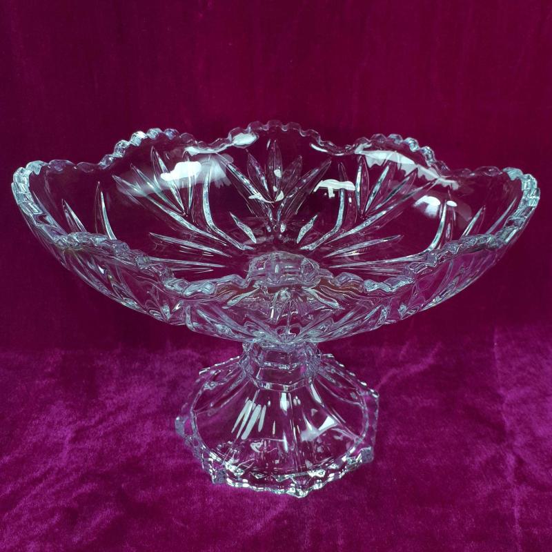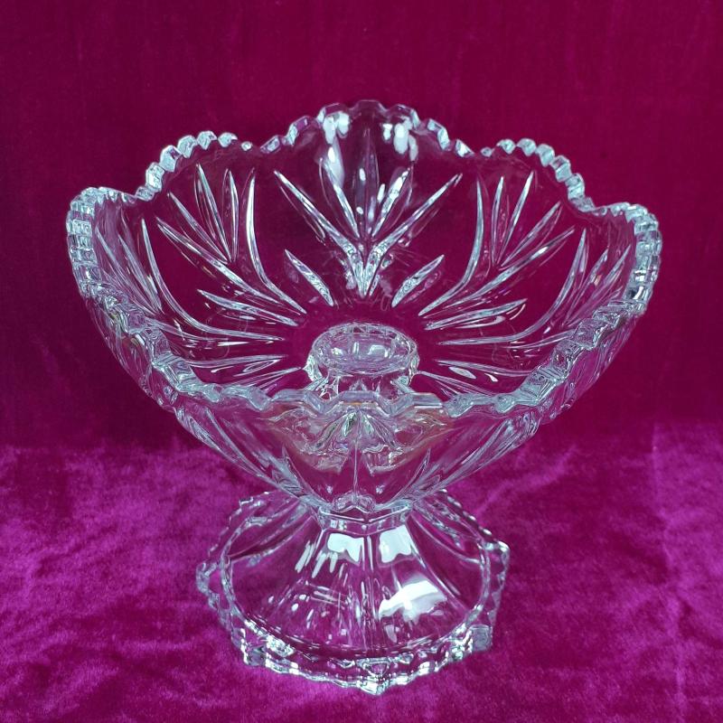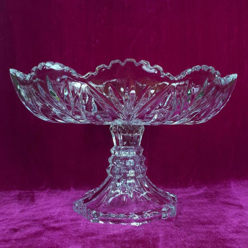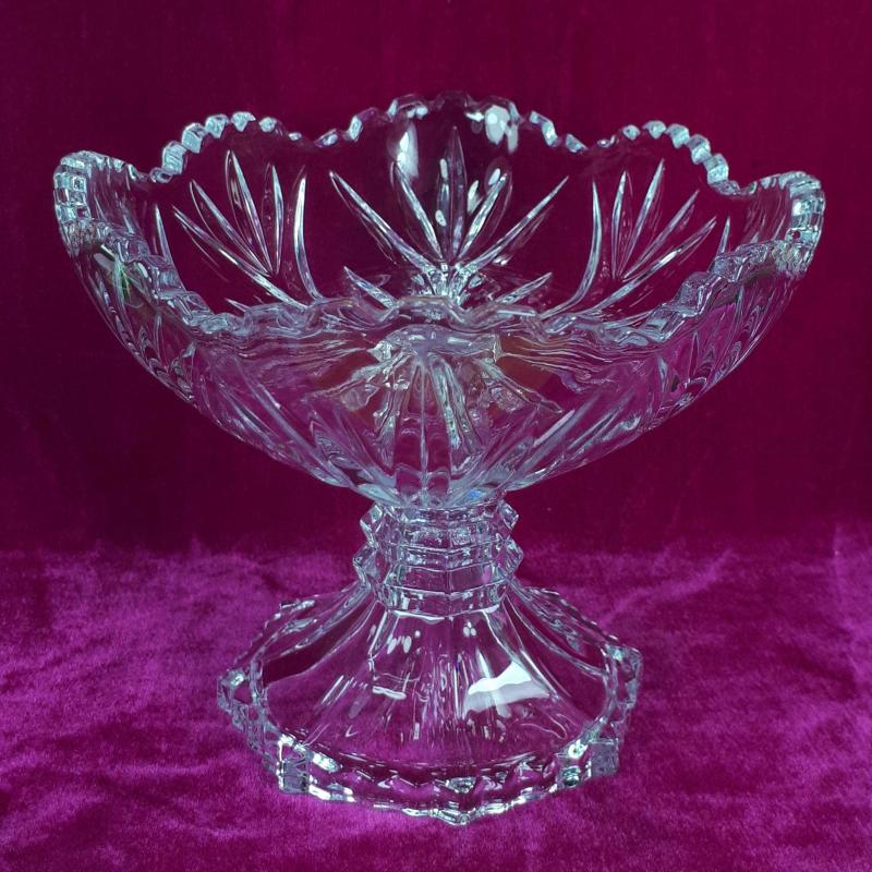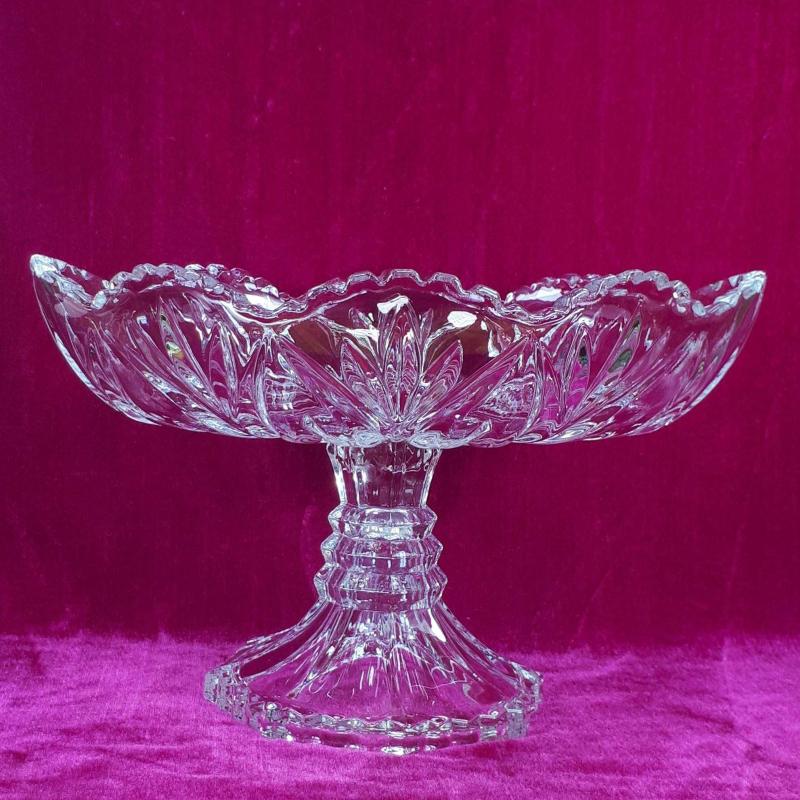 VINTAGE OVAL FORMLU , AYAKLI KRİSTAL CAM MEYVELİK , JARDİNYER başlıklı antika/koleksiyon objesi Avrupa menşe’lidir. 1980-1999 arası dönemine aittir.