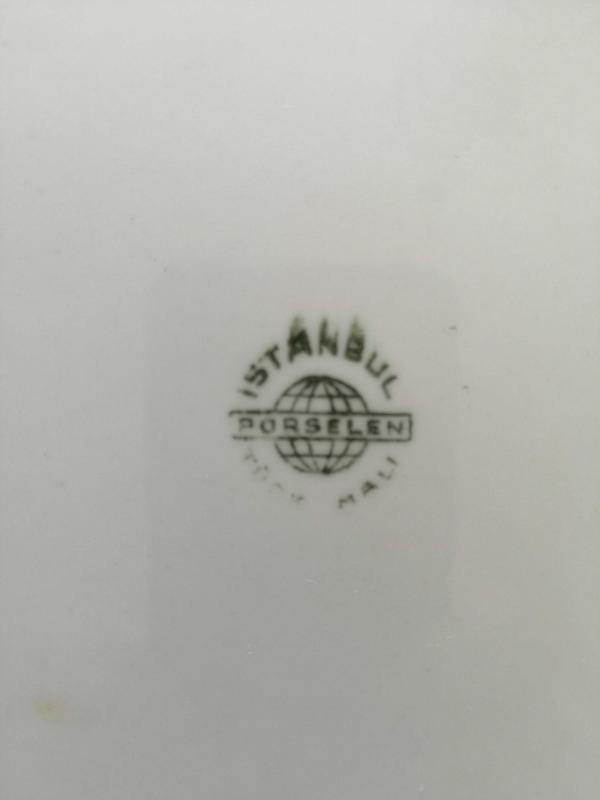 İSTANBUL PORSELEN SERVİS TABAĞI ÇAP : 27 CM HERHANGİ BİR ATIK VEYA ÇATLAK YOTKTUR KENAR YALDIZLARINDA YER YER SOYULMALAR MEVCUTTUR.