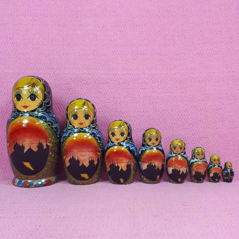 VINTAGE RUS EL BOYAMA 8 ADET MATRUŞKA SET başlıklı antika/koleksiyon objesi Rusya menşe’lidir. 1980-1999 arası dönemine aittir.