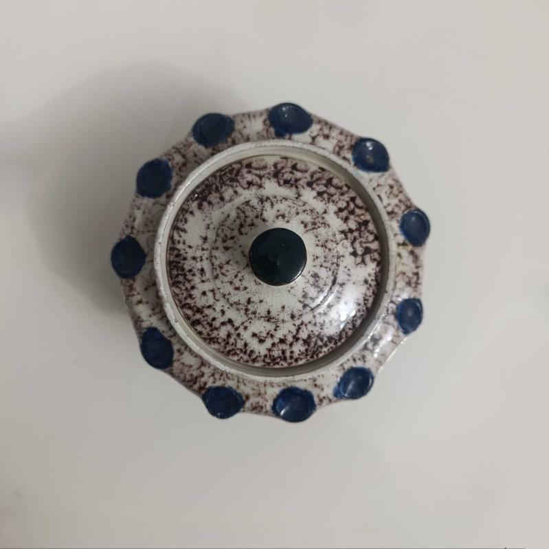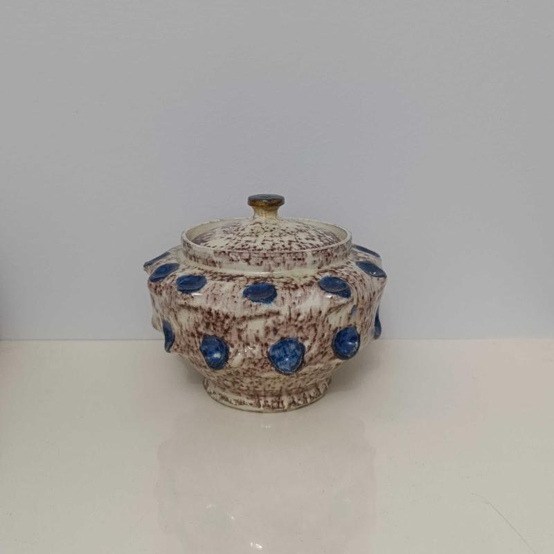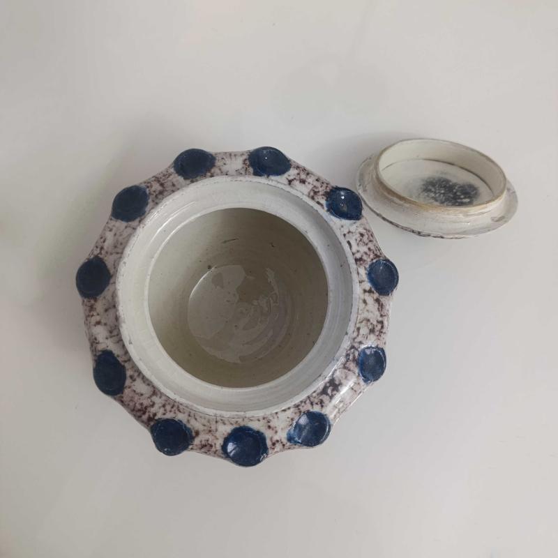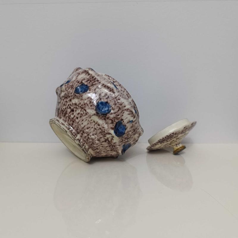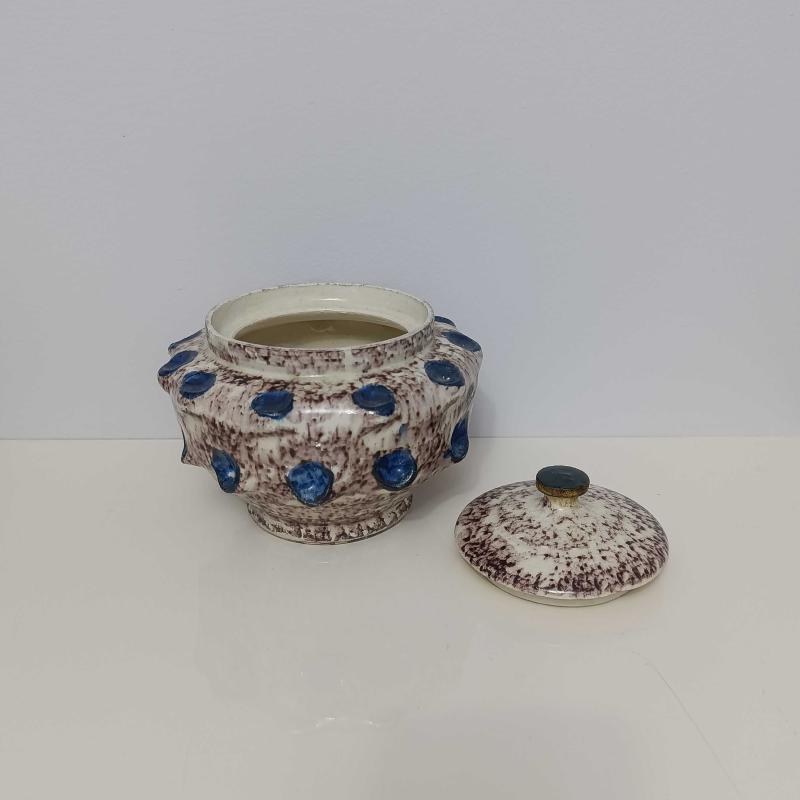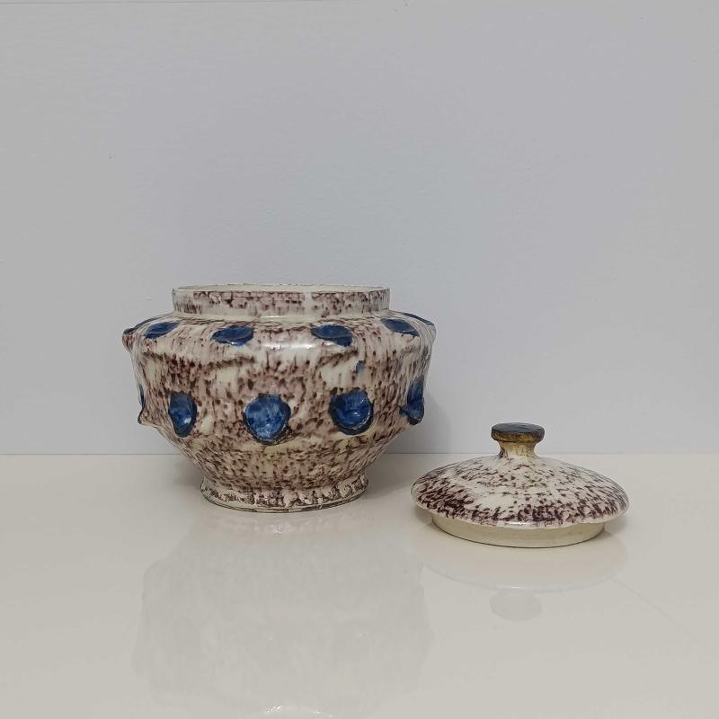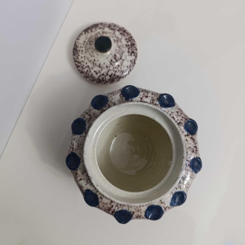 Seramikten mamul, üzeri sırlı, 15 cm çapında ve 12 cm boyunda, el yapımı, çok temiz şekerlik.