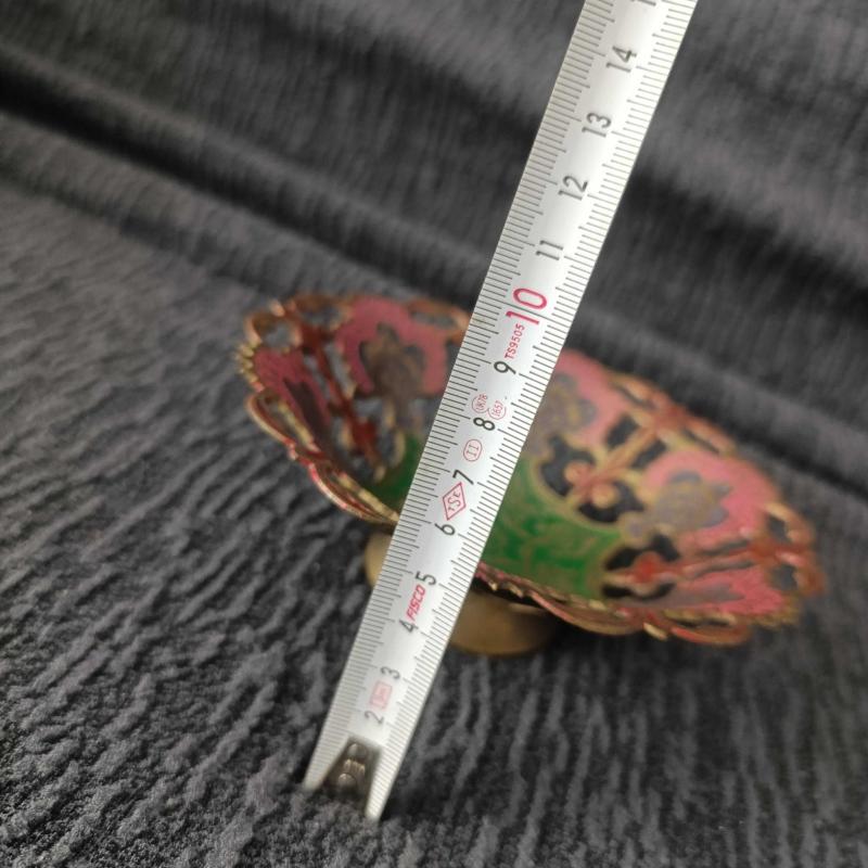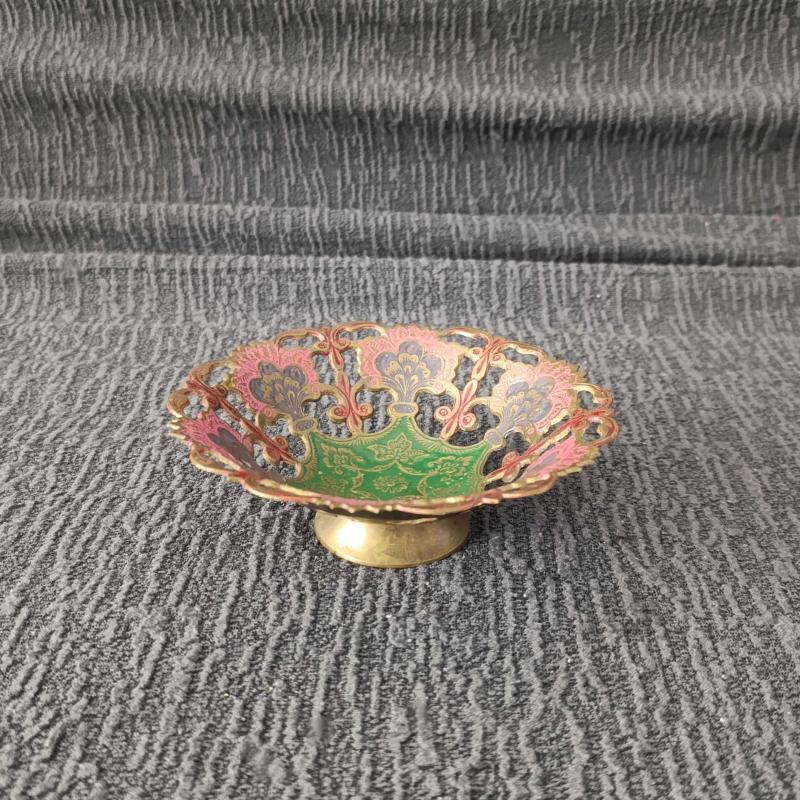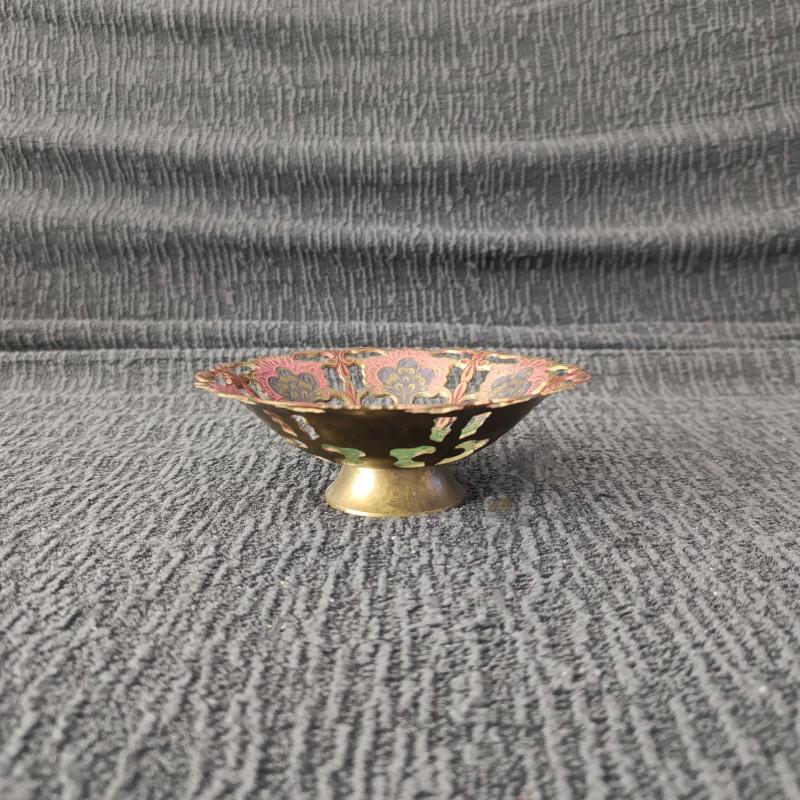 Pirinçten mamul, çiçek Motifli ve mine işlemeli, 15 cm çapında ve 5 cm yüksekliğinde, Şekerlik, Sunumluk Kase