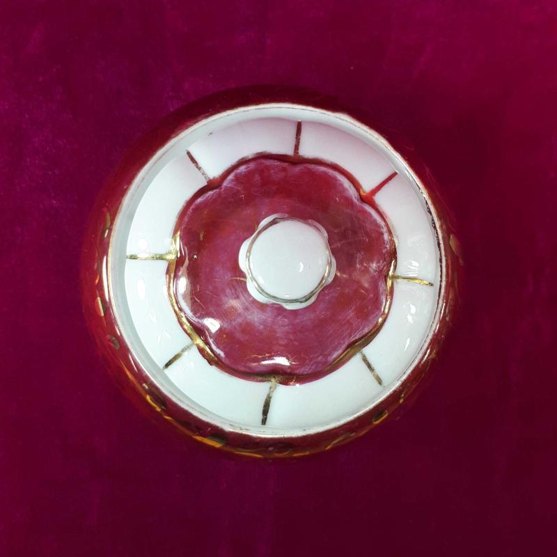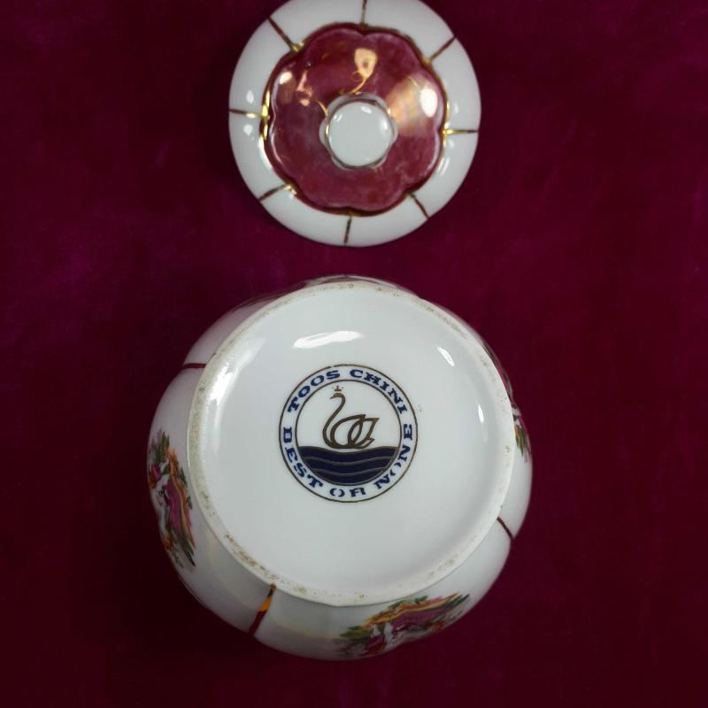 VINTAGE TOOS CHINI EL İŞİ ALTIN YALDIZ DEKORLU DİLİMĹİ GÖVDELİ KAPAKLI PORSELEN ŞEKERLİK , KAVANOZ başlıklı antika/koleksiyon objesi Asya menşe’lidir. 1980-1999 arası dönemine aittir.