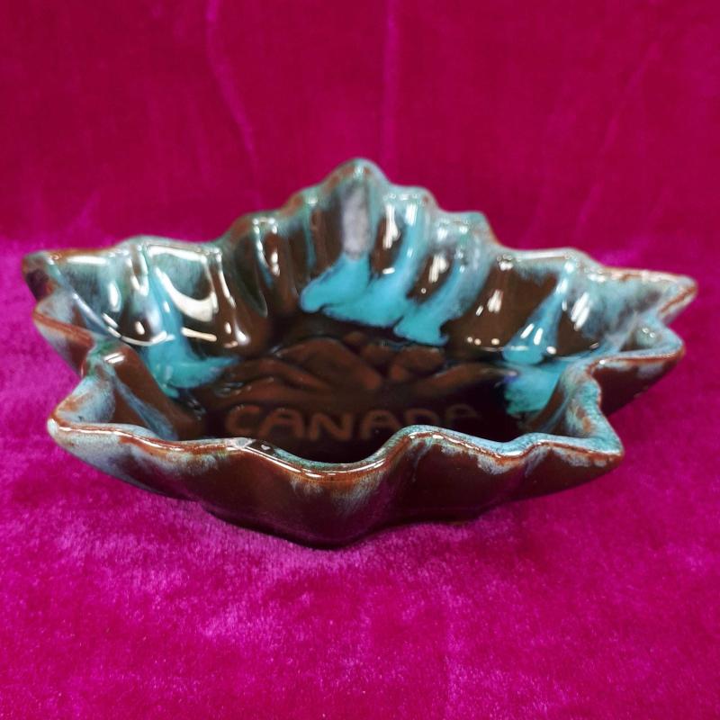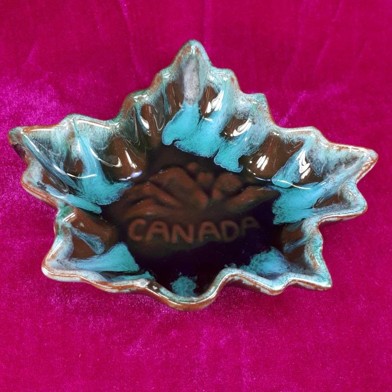 VINTAGE YAPRAK FORMUNDA CANADA YAZILI EL BOYAMA KANADA HATIRASI SERAMİK TABAK başlıklı antika/koleksiyon objesi Amerika menşe’lidir. 1960-1979 arası dönemine aittir.