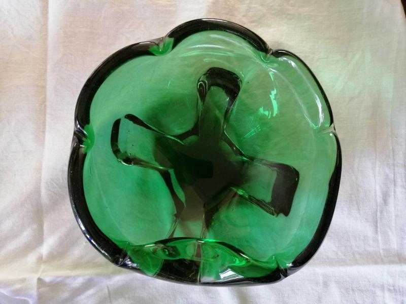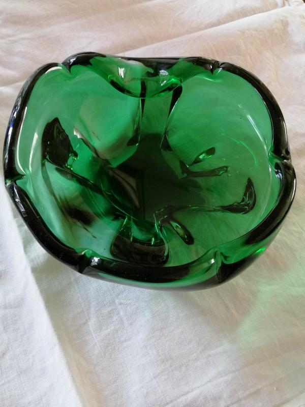 VINTAGE YEŞİL MURANO CAM ŞEKERLİK ÇAP : 21 CM YÜKSEKLİK : 10 CM HERHANGİ BİR ATIK VEYA ÇATLAK YOKTUR