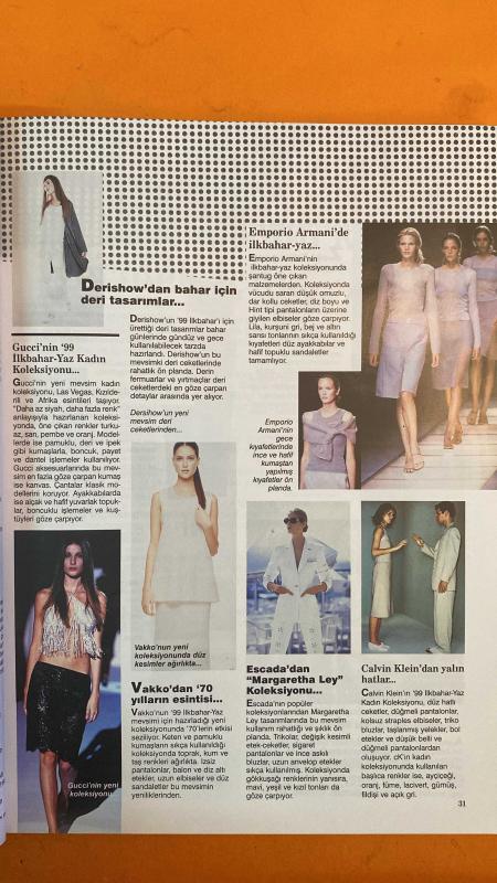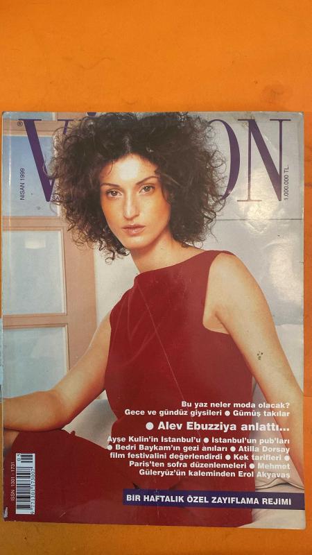 Kitap DİNÇBİLGİN tarafından yayınlanmıştır. 170 sayfadır. VİZYON DERGİSİ - NİSAN 1999 - ALEV EBUZZİYA – AYŞE KULİN – BEDRİ BAYKAM – ATİLLA DORSAY – MEHMET GÜLERYÜZ – EROL AKYAVAŞ – DEMET YORUÇ – SEDEF DELEN – TUVANA – HÜLYA BANKOĞLU EKŞİGİL – ŞENAY AKAY – GÖKSUN ÇAM – ASU EMRE – LALE SALGAR – TURGUT SALGAR – YEŞİM USTAOĞLU – KEREM ÇALIŞKAN – ELİF ILGAZ – TAYFUN TALİPOĞLU – YILMAZ ODABAŞI – AHMET KALELİ BU YAZ NELER MODA OLACAK? – GÜMÜŞ VE ALTIN TAKILAR – AYŞE KULİN’İN İSTANBUL’U – ALEV EBUZZİYA İLE RÖPORTAJ – YAZ ’99 MODA TRENDLERİ – ECZACIBAŞI BAYAN VOLEYBOL TAKIMI’NIN AVRUPA KUPASI ZAFERİ – ATİLLA DORSAY’DAN FİLM FESTİVALİ DEĞERLENDİRMESİ – GUCCI VE EMPORIO ARMANI’DEN İLKBAHAR-YAZ KOLEKSİYONLARI – VAKKO’DAN ’70’LER ESİNTİSİ – ESCADA’DAN “MARGARETHA LEY” KOLEKSİYONU – CALVIN KLEIN’DAN YALIN HATLAR – CLARINS’İN YENİ “TEINT ULTRA-VELOURS” ÜRÜNÜ – KEREM ÇALIŞKAN VE TAYFUN TALİPOĞLU’NUN SON OKUMALARI VE DENEYİMLERİ – AHMET KALELİ’DEN MOBİLYA TASARIMLARI - 170 SAYFA adlı eser Türkçe dilindedir.