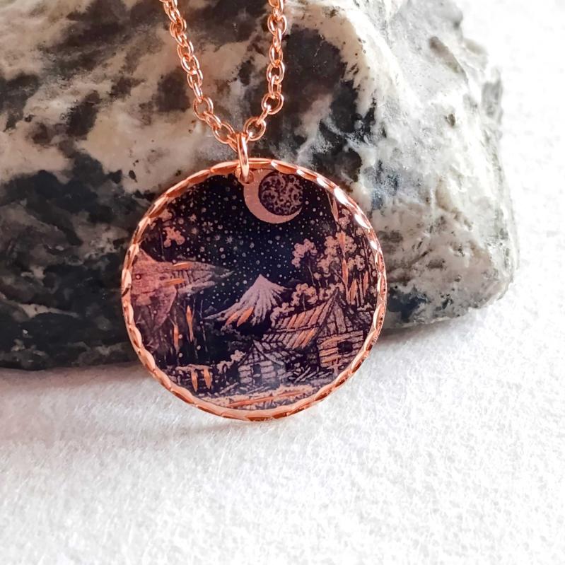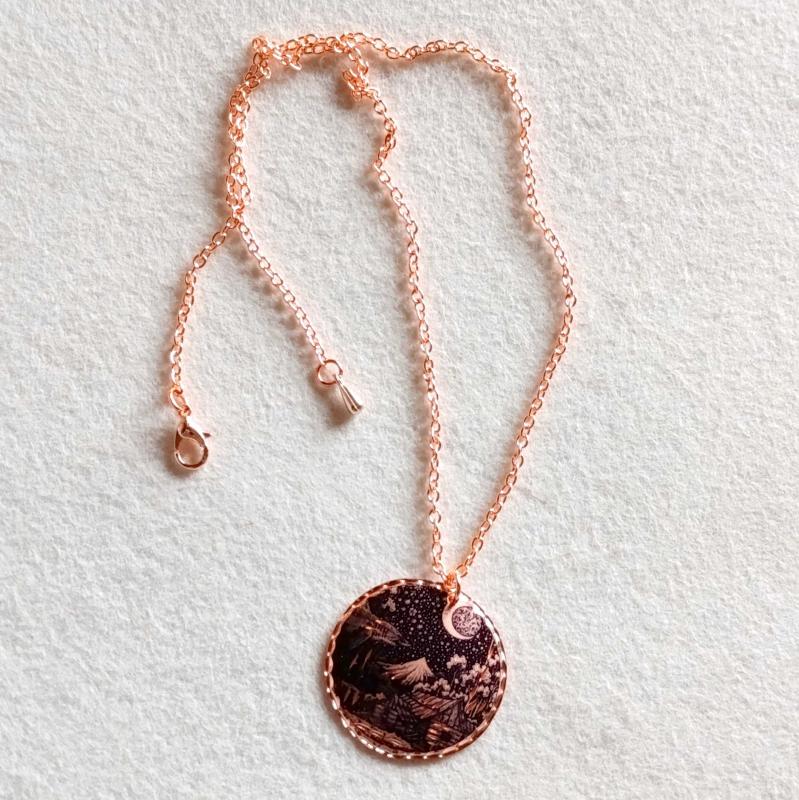 Van Gogh, Gece ve Ay temalı bakır kolye, rose gold renginde zincirli, elmas kalem işçilikli, ışıltılı, en son 2 gün önce güncellenmiştir.