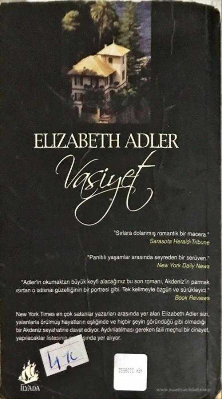 Vasiyet ( cep boy ), Elizabeth Adler tarafından kaleme alınmıştır. Kitap 2007 yılında İlyada tarafından yayınlanmıştır. 430 sayfadır. Vasiyet ( cep boy ) adlı eser Türkçe dilindedir.