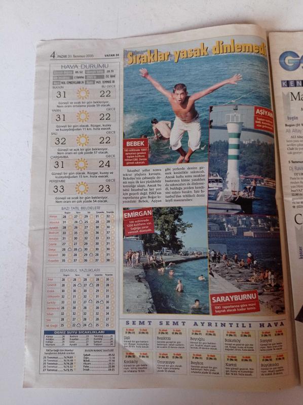 Vatan 34 Gazetesi - 31 Temmuz 2005 - Tarihi Rami Beach - Rumelihisarı'nda Anadolu Ateşi Yolculuğu - Büyük Memeli Kadınları Seviyorum - Kadir Topbaş Vapurlar Kesin Kalacak adlı eser Türkçe dilindedir.
