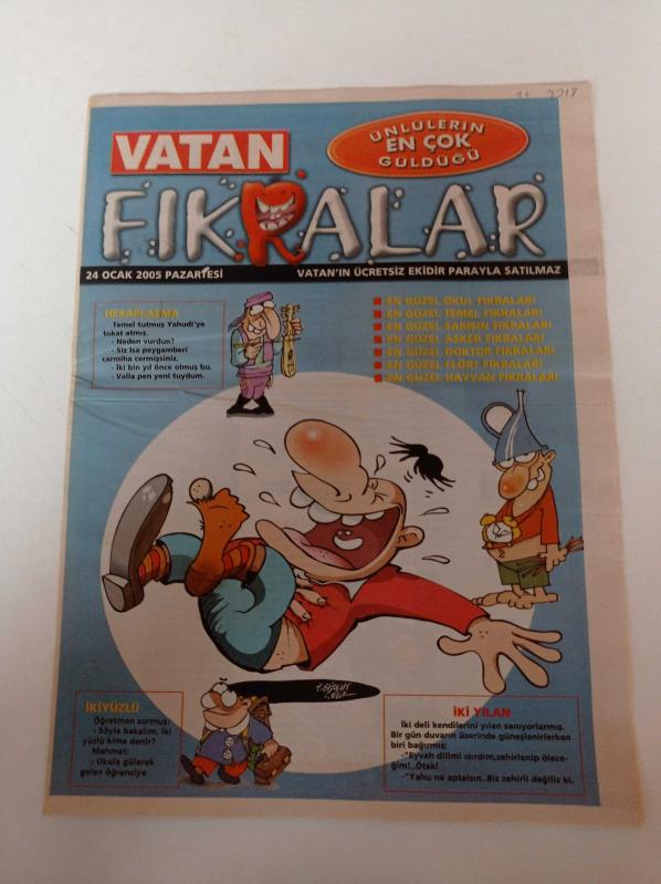 Vatan Fıkralar Gazetesi - 24 Ocak 2005 - Nasreddin Hoca Fıkraları - En Güzel Karışık Fıkralar - En Güzel Avcı Fıkraları - Jean Claude Van Damme - Ünlülerin En Çok Güldüğü Fıkralar - En Güzel Okul Fıkraları - En Güzel Temel Fıkraları - En Güzel Sarışın Fıkraları - En Güzel Asker Fıkraları - En Güzel Doktor Fıkraları - En Güzel Flört Fıkraları - En Güzel Hayvan Fıkraları adlı eser Türkçe dilindedir.