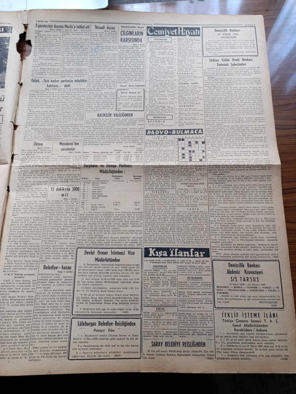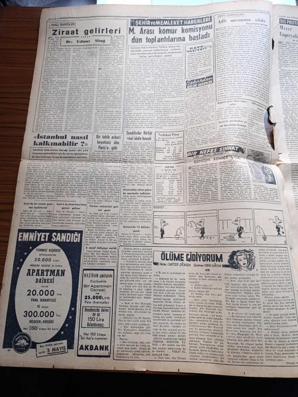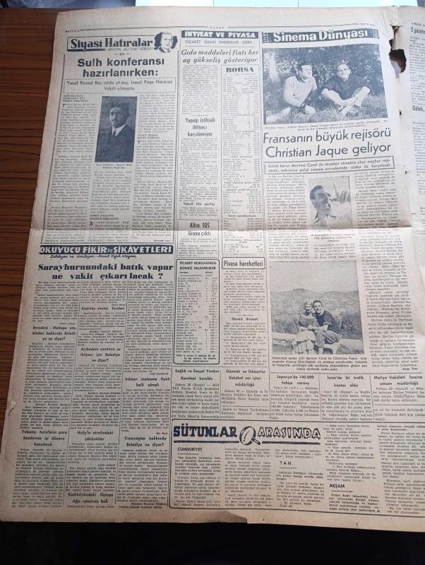Vatan Gazetesi - 1 Mayıs 1956 - Ahmet Emin Yalman Köşe Yazısı - İktisadi Duruma Dair Meclise İki Takrir Verildi - 5 Gazetecinin Durumu Meclise İntikal Etti - Belediye Kasap Mücadelesi Şiddetli Devresine Girdi - Mareşal Montgomery Kıtalararası Hidrojen Bombalı Füze 1961'de Hazır Diyor- CHP Genel Sekreteri Kasım Gülek Türk Kadını Partimize Tehalükle Katılıyor Dedi - Ankara İstanbul Arasında Geç Saatte Uçak Seferleri Başladı - Sovyet Komünist Partisi Genel Sekreteri Kruşçef Amerika Rusya İşbirliğinden Bahsetti - Bugün Bahar Bayramı - Türk Devrim Ocaklarında Kadın Hakları Görüşüldü - İstanbul Nasıl Kalkınabilir - Ölüme Gidiyorum Yazan Carter Dickson Yazı Dizisi - Memleketimizde Akıl Ve Kalp Hastalıkları Artmış - Cimciler Karikatür - General Ali Fuat Cebesoy'un Siyasi Hatıraları Yazı Dizisi - Fransa'nın Büyük Rejisörü Christian Jague Geliyor - Japonya'da 140.000 Fahişe Varmış - Bugün Brezilya Milli Takımı İle Karşılaşıyoruz - İsfendiyar - Lefter Küçükandonyadis - Naci Yazgan - Kadri Aytaç adlı eser, Kitap > Süreli Yayınlar > Gazeteler > Türkiye > Genel > Günlük kategorisinde İkinci El olarak satıştadır.