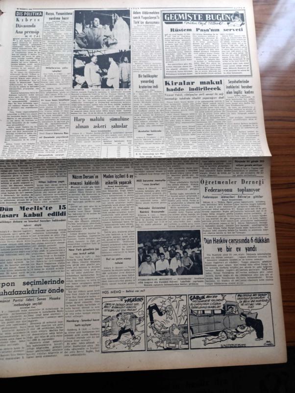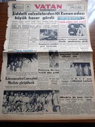 Vatan Gazetesi - 10 Temmuz 1956 - Şiddetli Zelzelelerden 101 Yunan Adası Büyük Hasar Gördü - Stalin Çarların Hafiyesi İfşaatı Yapan Alexander Orlov Yazı Dizisi - Ege Bölgesindeki Depremde İzmir'de Bazı Evlerin Duvarları Çatladı - Zamların Tatbiki Geri Bırakıldı - Gider Vergisi Tasarısı Meclis Gündemine Girdi - Kıbrıs Meselesi Cuma Günü Meclis'te Görüşülecek - Türkiye Milli Talebe Federasyonu'nun Yıldönümü Kutlandı - Amerikan Cumhurreisi Muavini Richard Nixon Ankara'da - İstanbul'un En Eski Süpürge ısı Madam Rebeka - Akşam Gazetesi İdare Müdürü Nazım Dersan'ın Cenazesi Kaldırıldı - Madem İşçileri 6 Ay Askerlik Yapacak - Hoş Memo Karikatür - General Ali Fuat Cebesoy'un Siyasi Hatıraları Yazı Dizisi - Cimcimeler Karikatür - Ella Sinders Karikatür - Marlene Dietrich - Galatasaray İngiliz Antrenörü George Dick İle Anlaştı - Adaletli Selahattin Ve B. Erol Fenerbahçe'ye Girmek İstiyor adlı eser, Kitap > Süreli Yayınlar > Gazeteler > Türkiye > Genel > Günlük kategorisinde İkinci El olarak satıştadır.