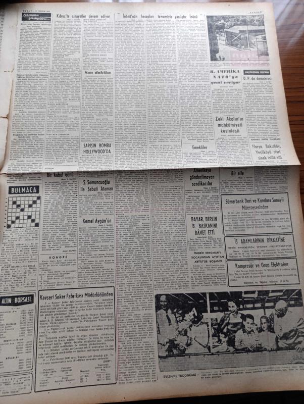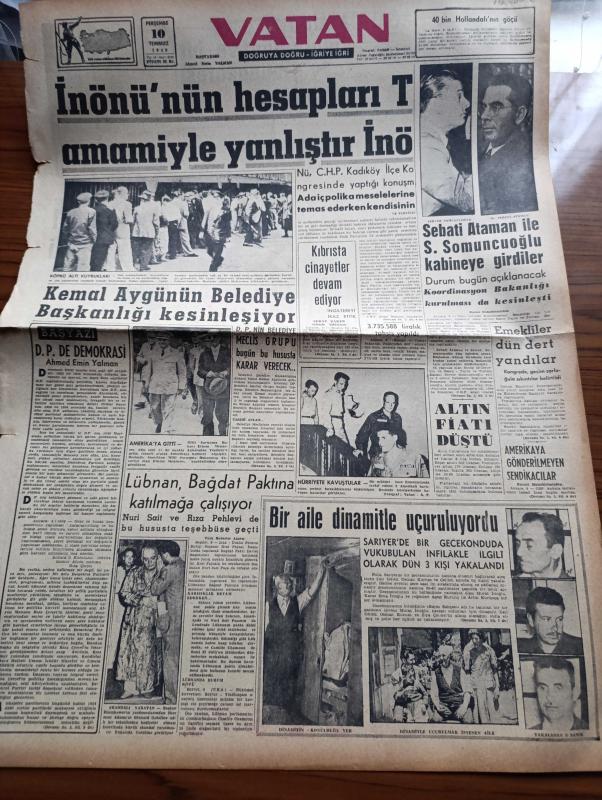 Vatan Gazetesi - 10 Temmuz 1958 - Demokrat Parti'de Demokrasi Yazan Ahmet Emin Yalman Köşe Yazısı - İsmet İnönü'nün Hesapları Tamamen Yanlıştır - Köprü Altı Kuyrukları - Senato Ataman İle Server Somuncuoğlu Kabineye Girdiler - Emekliler Dün Dert Yandılar - Altın Fiyatı Düştü - Lübnan Bağdat Paktına Katılmaya Çalışıyor - Yandan Akıyor Yandan Adnan Veli'nin Yeni Romanı Yazı Dizisi - Taş Devri Çizen Mıstık - Çakaralmaz Hafiye Çizen Eflatun Nuri - İsviçre'de Gazetecilik Öğretimi Yazan Hasan Refik Ertuğ - Hoş Memo Karikatür Çizen Al Capp - Polislerin Kıyafetleri Değişiyor - Bursa'da Karne İle Benzin Verilecek - İstimlak Yolsuzluğu Sanıkları Mahkum Oldu - Yer Perşembe Bir Hikaye Bir Kabul Günü Yazan Aysel Alpsal - Kalbimin Sahibi Yazan Nihal Yeğinobalı Yazı Dizisi - Şu Ölüm Denen Şey Yazan Frederic Dard Yazı Dizisi - Kültür Bayramı Peşinde Yazan Burhan Arpad - Lefter Küçükandonyadis Fenerbahçe'yi Bırakmadı - Lefter İmza Atarken Fotoğraf - Fahri Somer Turan'ı Da Karagümrüke Aldı - Özcan Arkoç adlı eser, Kitap > Süreli Yayınlar > Gazeteler > Türkiye > Genel > Günlük kategorisinde İkinci El olarak satıştadır.
