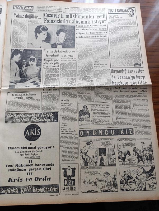 Vatan Gazetesi - 12 Haziran 1962 - İsmet İnönü Cumhuriyet Halk Partisi Grubunda Açıklama Yaptı - Adalet Partisi Ve Yeni Türkiye Partisi'nin Meclis Grupları da Bugün Toplanıyor - İstanbul'a Köylerden Akın Başladı - Genelkurmay Başkanı Cevdet Sunay Milli Savunma Bakanı İlhami Sancar Ve Kuvvet Komutanları İstanbul'da - Mutediller Mücadeleye Adalet Partisi Grubunda Devam Edecek - 12 Çocuklu Ana Fethan Yayla Altın Madalya Aldı - İşsiz Fikir Ve Fen Adamları İçin Ankara'da Bir Büro Açıldı - Chapman Raporu Yazan İrving Wallas Yazı Dizisi - Eşsiz İnönü'ye Açık Mektup - Turistler Arkeoloji Müzesini Beğeniyor - Fransa'da Büyük Grev Hareketi Başlıyor - Cezayirli Müslümanlar Yerli Fransızlar la Uzlaşmak İstiyor - Dayandığı Kuvvetler De Franco'ya Karşı Hareket Geçtiler - Dünyada Şehir Nüfusu 10 Yılda 2 Misli Olacak - Borsada Kaybeden Bir Amerikalı Kennedy'i Ölümle Tehdit Etti - Karl May'in Winnetou Hapishanede Yazıldı Şimdi Milyonlar Okuyor - Üç Perdelik Cinayet Yazan Agatha Christie Yazı Dizisi - adlı eser, Kitap > Süreli Yayınlar > Gazeteler > Türkiye > Genel > Günlük kategorisinde İkinci El olarak satıştadır.