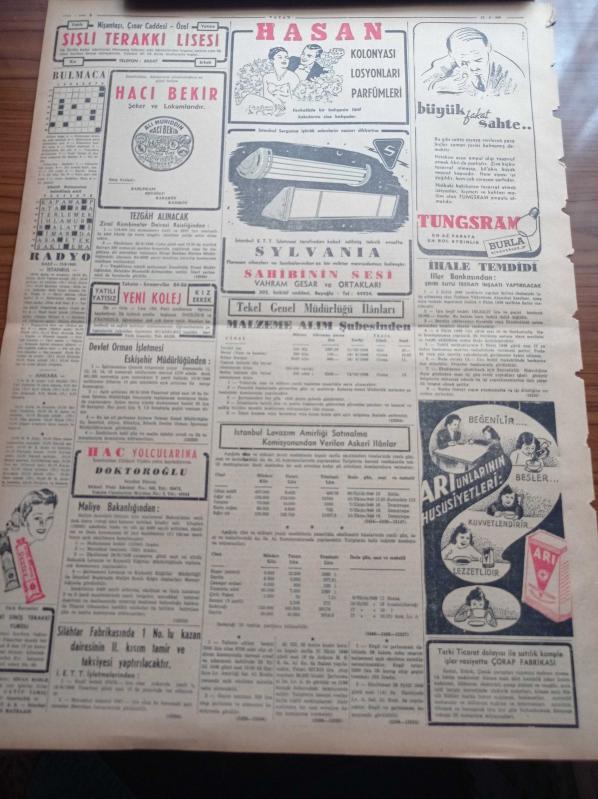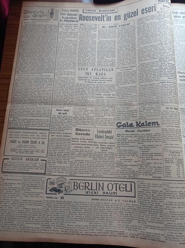 Vatan Gazetesi - 13 Eylül 1949 - İmar Bankasından İstediğiniz Kredi - Dışişleri Bakanı Necmettin Sadak Dün Geldi - Sakallı Vatan Haini Aslan Humbaracı Tekrar Sahnede - Filibe Konsolosluğumuzda Patlayan Bomba Hadisesi - Raman Petrolü Borularla İskenderun'a Sevkedilecek - İsrail Başbakanı Ben Gurion'a Suikast Teşebbüsü - Demokrat Parti Başkanı Celal Bayar - Roosevelt'in En Güzel Eseri - Hüsrev Gerede - Berlin Oteli Yazan Vicki Baum Yazı Dizisi - İlk Alman Cumhurbaşkanı Hür Demokratlardan Theodor Heuss Seçildi - Kremlin'in En Büyük Derdi Tito - Ankara Radyosundan Kurtulup İstanbul Radyosuna Kavuşanlar - Atina Hadiseleri Ve Burhan Felek - Sylvania Floresan - Ali Muhiddin Hacı Bekir - Arı Pirinç Unu - Hasan Kolonyası Losyonları Parfümleri - Tungsram Ampulleri adlı eser, Kitap > Süreli Yayınlar > Gazeteler > Türkiye > Mahalli > Günlük kategorisinde İkinci El olarak satıştadır.