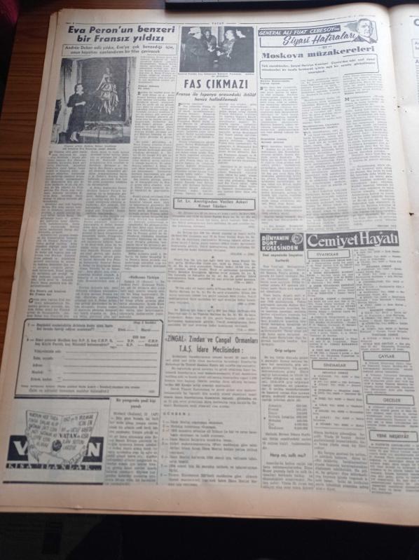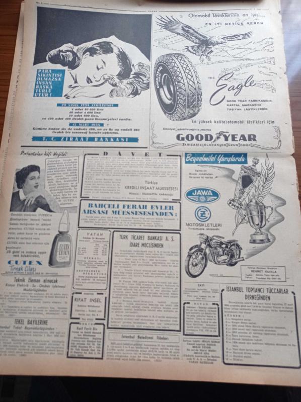 Vatan Gazetesi - 13 Mart 1954 - Dokuzuncu Büyük Millet Meclisi Dün Kendini Feshetti - Profesör Fuad Köprülü - Irak Kralı Faysal Pakistan'a Gitti - Müslüman Kardeşlerle Gizli Münasebet - En Sevilen Yıldızlar Allan Ladd'le Marilyn Monroe Seçildi - Cumhuriyetçi Millet Partisinin CHP İle İşbirliği İçin Şartları - 16 Mart Şehitlerini Anma Töreni - İbrahim Müteferrika'yı Anma Töreni Yapılacak - Tanzim Satışları Şirketi Kuruluyor - Milli Türk Talebe Birliğinin Amerika Gençliğine Mesajı - Otomobil Fabrikaları Rekabete Başladı - Eva Peron'un Benzeri Bir Fransız Yıldızı Andree Debar - Türkiye İspanya Milli Maçı Yarın Yapılıyor - Arsenal'in Rusya Seyahati - Good Year - Cutex Tırnak Cilası - Jawa Motosikletleri, Ahmet Emin Yalman tarafından kaleme alınmıştır. Vatan Gazetesi - 13 Mart 1954 - Dokuzuncu Büyük Millet Meclisi Dün Kendini Feshetti - Profesör Fuad Köprülü - Irak Kralı Faysal Pakistan'a Gitti - Müslüman Kardeşlerle Gizli Münasebet - En Sevilen Yıldızlar Allan Ladd'le Marilyn Monroe Seçildi - Cumhuriyetçi Millet Partisinin CHP İle İşbirliği İçin Şartları - 16 Mart Şehitlerini Anma Töreni - İbrahim Müteferrika'yı Anma Töreni Yapılacak - Tanzim Satışları Şirketi Kuruluyor - Milli Türk Talebe Birliğinin Amerika Gençliğine Mesajı - Otomobil Fabrikaları Rekabete Başladı - Eva Peron'un Benzeri Bir Fransız Yıldızı Andree Debar - Türkiye İspanya Milli Maçı Yarın Yapılıyor - Arsenal'in Rusya Seyahati - Good Year - Cutex Tırnak Cilası - Jawa Motosikletleri adlı eser Türkçe dilindedir.