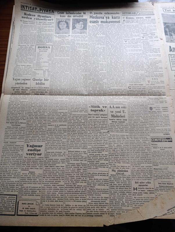 Vatan Gazetesi - 13 Temmuz 1949 - Çorum Kurbanlarının Bir Kısmı Defnedildi - Sovyetlerin Himayesinde Yeni Bir Kukla Kürt Devleti Kuruluyor - Hilmi Uran'ın Beyanatı - Demokrat Parti'liler Hilmi Uran'ın Beyanatını Tahlil Ediyor - İslamistan'ın Kurulma Zamanı - Demirperde Arkasında Moskova'ya Karşı Esaslı Mukavemet - Dün Altı Feci Uçak Kazası Oldu - Berlin Oteli Yazan Vicki Baum Yazı Dizisi - Geçmişte Bugün Sadrazam Ayas Paşa'nın Ölümü Yazan Feridun Fazıl Tülbentçi Yazı Dizisi - Doktor Lütfi Kırdar Dün Talebe Federasyonu Mümessilleri İle Görüştü - Köylüye Toprak - Cumhurbaşkanı İsmet İnönü'nün Erzurumlulara Hitabesi - Prenses Faize İstanbul'a Geliyor - Kahve Fiyatları Neden Yükseliyor - Yurt Köşelerinden Röportajlar Yazan Recep Bilginer - Hindistan'da Komünizm Nasıl Ezildi - Çapamarka - Bulmaca - Devlet Operasında Carmen Ve Sevil Berberi, Ahmet Emin Yalman tarafından kaleme alınmıştır. Vatan Gazetesi - 13 Temmuz 1949 - Çorum Kurbanlarının Bir Kısmı Defnedildi - Sovyetlerin Himayesinde Yeni Bir Kukla Kürt Devleti Kuruluyor - Hilmi Uran'ın Beyanatı - Demokrat Parti'liler Hilmi Uran'ın Beyanatını Tahlil Ediyor - İslamistan'ın Kurulma Zamanı - Demirperde Arkasında Moskova'ya Karşı Esaslı Mukavemet - Dün Altı Feci Uçak Kazası Oldu - Berlin Oteli Yazan Vicki Baum Yazı Dizisi - Geçmişte Bugün Sadrazam Ayas Paşa'nın Ölümü Yazan Feridun Fazıl Tülbentçi Yazı Dizisi - Doktor Lütfi Kırdar Dün Talebe Federasyonu Mümessilleri İle Görüştü - Köylüye Toprak - Cumhurbaşkanı İsmet İnönü'nün Erzurumlulara Hitabesi - Prenses Faize İstanbul'a Geliyor - Kahve Fiyatları Neden Yükseliyor - Yurt Köşelerinden Röportajlar Yazan Recep Bilginer - Hindistan'da Komünizm Nasıl Ezildi - Çapamarka - Bulmaca - Devlet Operasında Carmen Ve Sevil Berberi adlı eser Türkçe dilindedir.