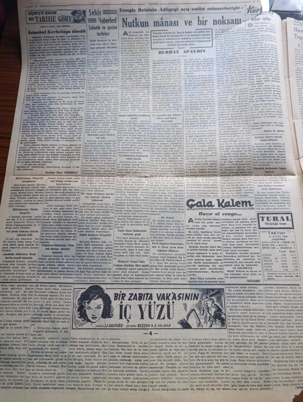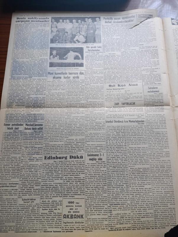 Vatan Gazetesi - 14 Eylül 1950 - Basın Mesleğinde Müşterek Bir Dünya Cephesine Doğru Yazan Ahmet Emin Yalman Köşe Yazısı - Marshall Savunma Bakanı Tayin Edildi - Manevraların Dördüncü Günü De Başarılı Oldu - Milli Eğitim Bakanı Tevfik İleri'nin Tebliği - Üç Büyükler Batı Almanya'yı Konuştular - Galatasaray İngiliz Sunderland Karşısında 3 1 Mağlup Oldu - Solcuların Muhakemesi - Hür Markopaşa Sahibi Raci Hakkı Dinçer Ağır Cezaya Verildi - Bir Zabıta Vakasının İçyüzü Yazan J. J. Gauthier Yazı Dizisi - Geçmişte Bugün İstanbul Kerbelaya Döndü Yazan Feridun Fazıl Tülbentçi Yazı Dizisi - Nutkun Manası Ve Bir Noksanı - Yazar Nurettin Safa Coşkun Aleyhine Dava Açıldı - Amerika'nın Sesi Radyosuna 97 Milyon Dolar Verildi - Susuz Ve Işıksız Şehir İstanbul - Dün Geceki Boks Karşılaşmaları Elektrik Takımı Yunanlılara 2 1 Galip Geldi - Kanuni Sultan Süleyman Yazan Feridun Fazıl Tülbentçi Yazı Dizisi - Varta Akü - Hasan Limon Çiçekleri Kolonyası - İstanbul Ankara Radyosu Programı - Bulmaca adlı eser, Kitap > Süreli Yayınlar > Gazeteler > Türkiye > Genel > Günlük kategorisinde İkinci El olarak satıştadır.