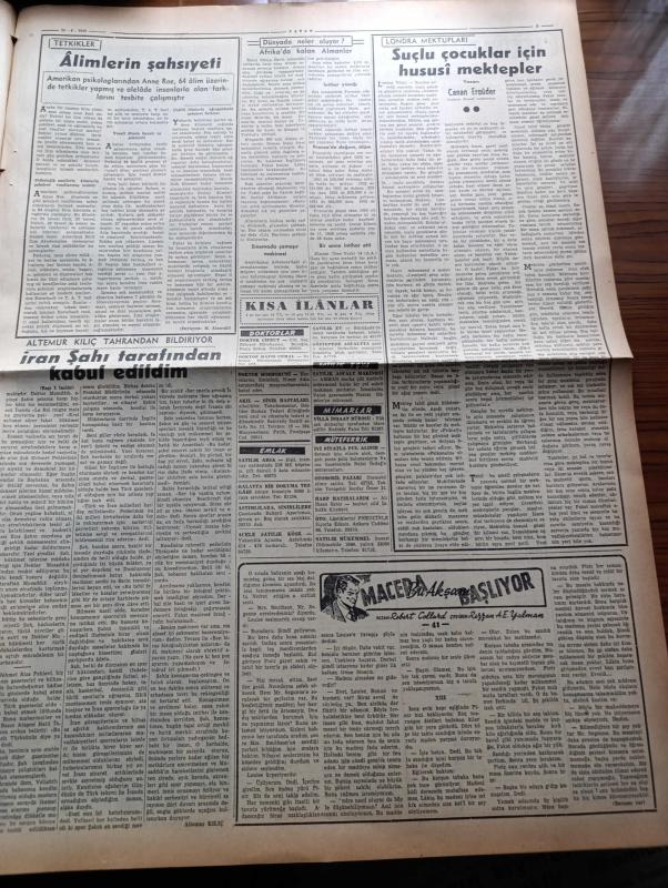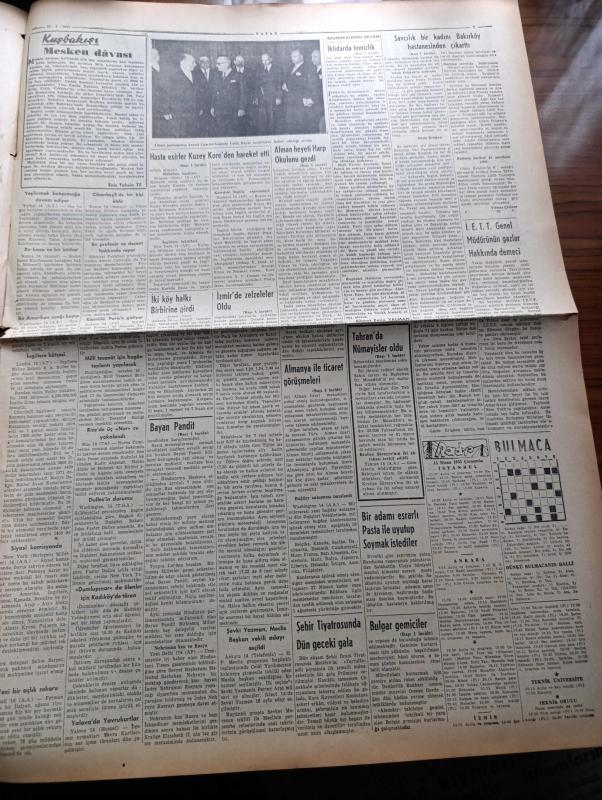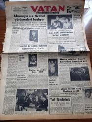 Vatan Gazetesi - 15 Nisan 1953 - Ahmet Emin Yalman Köşe Yazısı - Almanya İle Ticaret Görüşmeleri Başlıyor - Savcılık Güzin Erişken'i Bakırköy Hastanesinden Çıkarttı - Altemur Kılıç Tahran'dan Bildiriyor İran Şahı Tarafından Kabul Edildim - Tahran'da Nümayişler Oldu - Hasta Esirler Kuzey Kore'den Hareket Etti - Kadınlar Tekkesi Yazan Refik Halid Karay Yazı Dizisi - Subay Terfi Kanunu - Bakırköy Ve Eyüp'te Ucuz Ev Yaptırılacak - Şehir Tiyatrosu İçin Yeni Bir Talimatname Hazırlandı - Madalya Alacak Kore Kahramanları - Sovyetler'in Petrol Siyaseti Nedir - Profesör Cemil Topuzlu'nun Meslek Hayatına Ait Hatıralar Yazan İhsan Ada Yazı Dizisi - Kibar Tuvalet Sabunu - Macera Bu Akşam Başlıyor Yazan Robert Collard Yazı Dizisi - Atatürk Heykeli Karşılaşmaları - Pazar Günü Fenerbahçe İle Galatasaray Karşılaşıyor - Borsa - Good Year Lastikleri - Arı Unları adlı eser, Kitap > Süreli Yayınlar > Gazeteler > Türkiye > Genel > Günlük kategorisinde İkinci El olarak satıştadır.