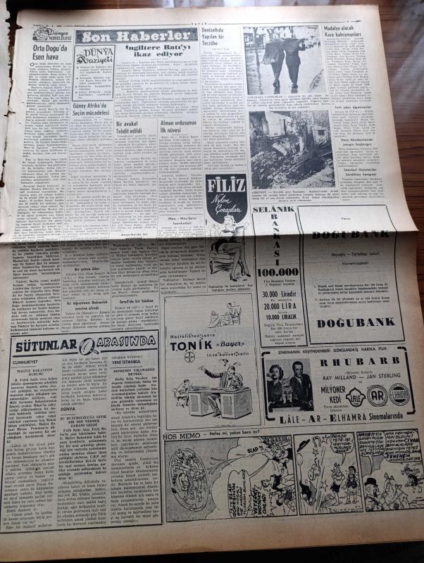 Vatan Gazetesi - 15 Nisan 1953 - Ahmet Emin Yalman Köşe Yazısı - Almanya İle Ticaret Görüşmeleri Başlıyor - Savcılık Güzin Erişken'i Bakırköy Hastanesinden Çıkarttı - Altemur Kılıç Tahran'dan Bildiriyor İran Şahı Tarafından Kabul Edildim - Tahran'da Nümayişler Oldu - Hasta Esirler Kuzey Kore'den Hareket Etti - Kadınlar Tekkesi Yazan Refik Halid Karay Yazı Dizisi - Subay Terfi Kanunu - Bakırköy Ve Eyüp'te Ucuz Ev Yaptırılacak - Şehir Tiyatrosu İçin Yeni Bir Talimatname Hazırlandı - Madalya Alacak Kore Kahramanları - Sovyetler'in Petrol Siyaseti Nedir - Profesör Cemil Topuzlu'nun Meslek Hayatına Ait Hatıralar Yazan İhsan Ada Yazı Dizisi - Kibar Tuvalet Sabunu - Macera Bu Akşam Başlıyor Yazan Robert Collard Yazı Dizisi - Atatürk Heykeli Karşılaşmaları - Pazar Günü Fenerbahçe İle Galatasaray Karşılaşıyor - Borsa - Good Year Lastikleri - Arı Unları, Ahmet Emin Yalman tarafından kaleme alınmıştır. Vatan Gazetesi - 15 Nisan 1953 - Ahmet Emin Yalman Köşe Yazısı - Almanya İle Ticaret Görüşmeleri Başlıyor - Savcılık Güzin Erişken'i Bakırköy Hastanesinden Çıkarttı - Altemur Kılıç Tahran'dan Bildiriyor İran Şahı Tarafından Kabul Edildim - Tahran'da Nümayişler Oldu - Hasta Esirler Kuzey Kore'den Hareket Etti - Kadınlar Tekkesi Yazan Refik Halid Karay Yazı Dizisi - Subay Terfi Kanunu - Bakırköy Ve Eyüp'te Ucuz Ev Yaptırılacak - Şehir Tiyatrosu İçin Yeni Bir Talimatname Hazırlandı - Madalya Alacak Kore Kahramanları - Sovyetler'in Petrol Siyaseti Nedir - Profesör Cemil Topuzlu'nun Meslek Hayatına Ait Hatıralar Yazan İhsan Ada Yazı Dizisi - Kibar Tuvalet Sabunu - Macera Bu Akşam Başlıyor Yazan Robert Collard Yazı Dizisi - Atatürk Heykeli Karşılaşmaları - Pazar Günü Fenerbahçe İle Galatasaray Karşılaşıyor - Borsa - Good Year Lastikleri - Arı Unları adlı eser Türkçe dilindedir.