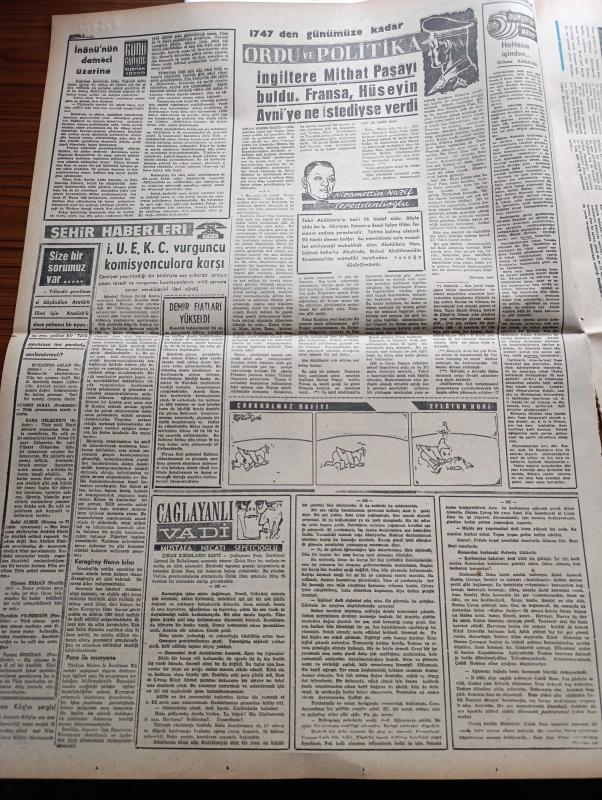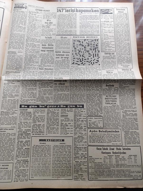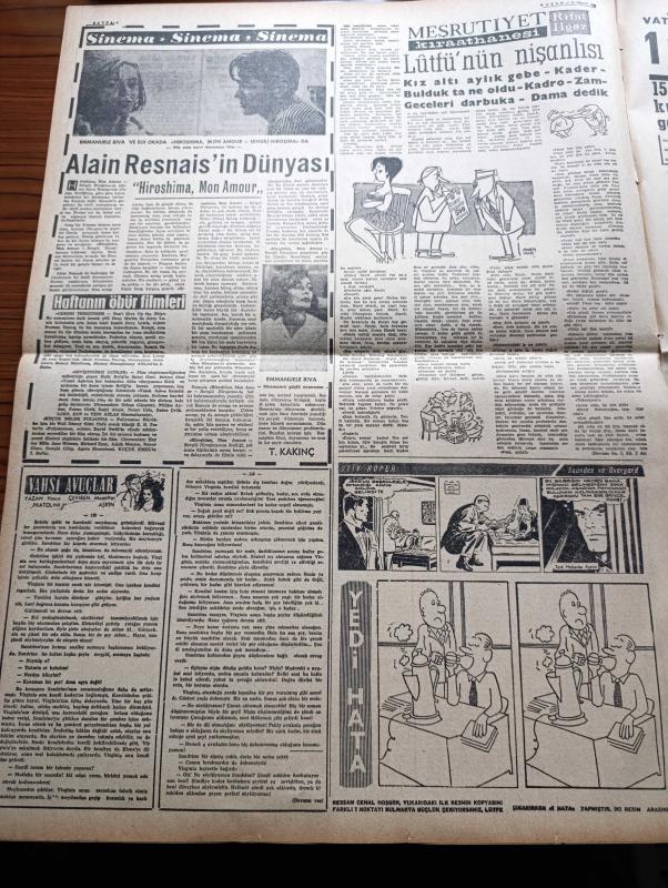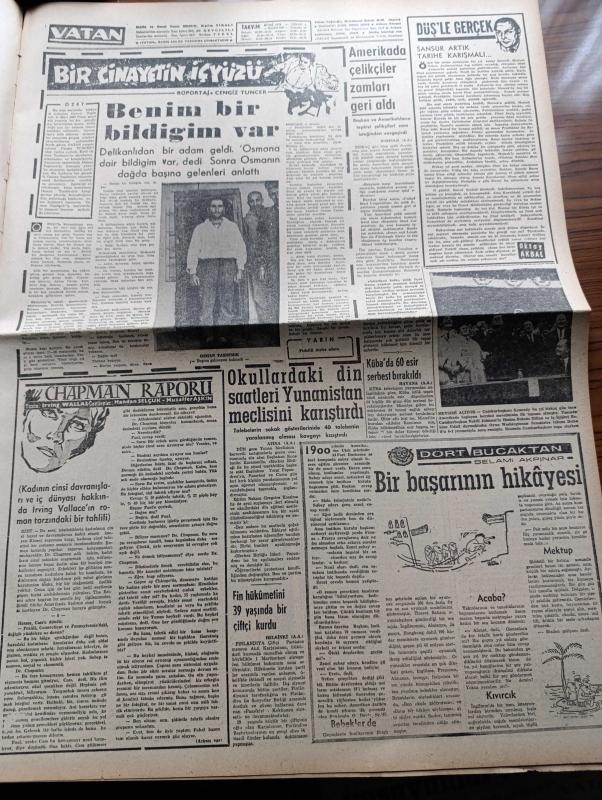 Vatan Gazetesi - 15 Nisan 1962 - Yılanların Öcü Filmi Tam Sayfa İlanı - Şevket Süreyya Aydemir Köşe Yazısı - Subaylara Af Tasarısı Bugün Hafta Mecliste - Genelkurmay Başkanı Cevdet Sunay Ve Kuvvet Kumandanları Kütahyaya Gitti - Devlet Bakanı Nihat Su Tek Başına Siyasi Af Huzur Getirmez Dedi - 147'ler İşi Kapanırken Yazan Haldun Taner - Filmciler Sansüre Cephe Aldı - Elektriğe De Zam Yapılacak - Çağlayanlı Vadi Yazan Mustafa Necati Sepetçioğlu Yazı Dizisi - 1747'den Günümüze Kadar Ordu Ve Politika Yazan Nizamettin Nazif Tepedenlioğlu Yazı Dizisi - Oscar'ı Kazanması Onu Yeni Bir İnsan Yaptı Sophia Loren - Kuzeyli İlahe Anita Ekberg - Chapman Raporu Yazan İrving Wallas Yazı Dizisi - Alain Resnais'in Dünyası - Meşrutiyet Kıraathanesi Yazan Rıfat Ilgaz - Fikret Hakan - Kadir Savun - Ali Şen - Fakir Baykurt - Müzik Yalçın Tura - Aliye Rona - Fenerbahçe Karşıyaka'yı Eze Eze Yendi - İstanbulspor Altay'ı Açık Farkla Mağlup Etti - Spor Toto'da 34. Hafta Hasılatı - PTT Takımı Feriköy'ü Yendi adlı eser, Kitap > Süreli Yayınlar > Gazeteler > Türkiye > Genel > Günlük kategorisinde İkinci El olarak satıştadır.