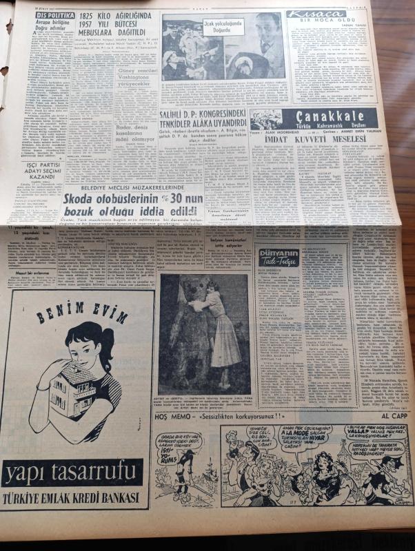 Vatan Gazetesi - 16 Şubat 1957 - Ahmet Emin Yalman Köşe Yazısı - Rus Dışişleri Vekilliğine A. Gromiko Tayin Edildi - İşletmeler Vekili Samed Ağaoğlu Hayat Pahalı Değildir Dedi - Cumhuriyetçi Parti Kuruldu - 1934 Doğumlu Erler Mart'ta Terhis Ediliyor - Profesör Erick Frank'ın Cenazesi Rumelihisarında Türk Kabristanına Gömüldü - 58 Macar Mültecisi De Bugün Gelecek - Turgut Reis'in Mezarı Libya'da Kalacak - Amerika 50 Milyon Dolarlık Yatırım Yapacak - Eski Ahbap Reşat Nuri Güntekin'in İlk Eseri Yazı Dizisi - Yeni Türk Ticaret Kanunu Yazan Doktor Nihat Türel - 1956 Yılında Türkiye'de 1510 Gazete Ve Dergi Yayınlandı - Bursa'da Rock And Roll Festivali Tertiplendi - Skoda Otobüslerinin %30'nun Bozuk Olduğu İddia Ediliyor - Çanakkale Türk'ün Kahramanlık Destanı Yazan Alan Moorehead Yazı Dizisi - Hoş Memo Karikatür - Haftanın Filmleri Yazan Salah Birsel - ev Kadın Moda - Tek Seçici Eşfak Aykaç Dün Milli Takımı Açıkladı - Galatasaray Modayı Güçlükle Yendi - Amerika Ordu Karması Adana'ya Vardı adlı eser, Kitap > Süreli Yayınlar > Gazeteler > Türkiye > Genel > Günlük kategorisinde İkinci El olarak satıştadır.