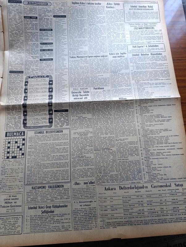 Vatan Gazetesi - 17 Nisan 1957 - Tanınmış Amerikalı Aktör William Holden Rock And Roll Nedir Bilmiyorum Dedi - İngiltere Kıbrıs'ı Taksim'e Taraftar - Sirkeci Halkalı Treninde Orak Çekiç Görüldü - Meşhur İmar Ve Şehircilik Mütehassısı Prost İstanbul'a Geldi - Döviz Kaçakçısı Ruben Asa Dün Tahliye Edildi - Patrikhane Dün De Sustu - Kıbrıs İçin İngiltere'ye Bir Muhtıra Vereceğiz Dedi - Dieppe Newhaven Yolu Yazan Henry Miller Yazı Dizisi - Bir Sanat Geleneği Mahya Yazan Ahmet Kutsi Tecer Köşe Yazısı - Çanakkale Türk'ün Kahramanlık Destanı Yazan Alan Moorehead Yazı Dizisi - Sendikalar Kanunu Tasarısı Hazırlandı - Ramazan Köşesi - Kıbrıs Meselesi Ve Fener Patrikhanesi Yazan Sadun Tanju - Hoş Memo Karikatür - 1001 Gece Masalları Hazırlayan Suat Taşer Yazı Dizisi - Dünya Nelere Gülüyor Karikatür - Batakhane İnsanları Yazan Adnan Veli Yazı Dizisi - Milli Takım Doğu Almanya'yı Da İspanya'yı da Yendi - Mithatpaşa'de Gece Maçları - Adalet Kasımpaşa Bugün Karşılaşıyor - Fenerbahçe Galatasaray Maçı adlı eser, Kitap > Süreli Yayınlar > Gazeteler > Türkiye > Genel > Günlük kategorisinde İkinci El olarak satıştadır.