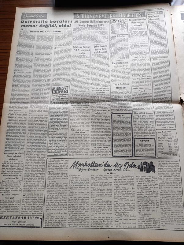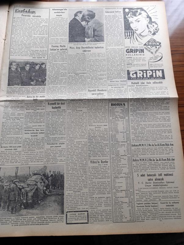 Vatan Gazetesi - 17 Ocak 1955 - Ahmet Emin Yalman Köşe Yazısı - Mısır Arap Başvekillerini Toplantıya Çağırıyor - İran Türkiye Irak Paktına Katılmayacağını Dün Bildirdi - Kıbrıs'ta Rumlar Hala Enosis Diye Bağırıyor - Rotschild Öldü - Manhattan'da Üç Oda Yazan Simenon Yazı Dizisi - Çalışma Enstitüsü Bugün Açılıyor - Washington Ve Üçlü Balkan Anlaşması - Kanseri Azaltmak İçin Beş Şart - Costa Rica'da Şiddetli Çarpışmalar Oluyor - Hilton Oteline Beş Mil Keten Geliyor - Stalin'in Fransa'da Üvey Bir Kardeşi Varmış - Eski Faşist Bakanlar Nasıl Yaşıyorlar - Sir Julius Levy'nin Yükselişi Yazan Daphne Du Maurier Yazı Dizisi - Good Year Lastikleri - Ankara İstanbul İzmir Teknik Üniversite Radyosu Yayın Programı - Gripin - Beşiktaş İstanbulspor'u Güçlükle Yendi - Fatih Kupası Üçüncü Yıl Yarışması - Mısır Bisiklet Turu - Adalet Beykoz'u 2 0 Yendi - Vefa Emniyet Maçı 0 0 - Adana Lig Maçları Sona Erdi - Yugoslav Takımı Lubliana Eskişehir'de Mağlup Oldu - 52 Kiloda Hüseyin Akbaş'ın Galibiyeti adlı eser, Kitap > Süreli Yayınlar > Gazeteler > Türkiye > Genel > Günlük kategorisinde İkinci El olarak satıştadır.