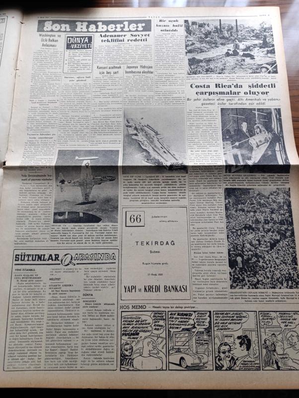 Vatan Gazetesi - 17 Ocak 1955 - Ahmet Emin Yalman Köşe Yazısı - Mısır Arap Başvekillerini Toplantıya Çağırıyor - İran Türkiye Irak Paktına Katılmayacağını Dün Bildirdi - Kıbrıs'ta Rumlar Hala Enosis Diye Bağırıyor - Rotschild Öldü - Manhattan'da Üç Oda Yazan Simenon Yazı Dizisi - Çalışma Enstitüsü Bugün Açılıyor - Washington Ve Üçlü Balkan Anlaşması - Kanseri Azaltmak İçin Beş Şart - Costa Rica'da Şiddetli Çarpışmalar Oluyor - Hilton Oteline Beş Mil Keten Geliyor - Stalin'in Fransa'da Üvey Bir Kardeşi Varmış - Eski Faşist Bakanlar Nasıl Yaşıyorlar - Sir Julius Levy'nin Yükselişi Yazan Daphne Du Maurier Yazı Dizisi - Good Year Lastikleri - Ankara İstanbul İzmir Teknik Üniversite Radyosu Yayın Programı - Gripin - Beşiktaş İstanbulspor'u Güçlükle Yendi - Fatih Kupası Üçüncü Yıl Yarışması - Mısır Bisiklet Turu - Adalet Beykoz'u 2 0 Yendi - Vefa Emniyet Maçı 0 0 - Adana Lig Maçları Sona Erdi - Yugoslav Takımı Lubliana Eskişehir'de Mağlup Oldu - 52 Kiloda Hüseyin Akbaş'ın Galibiyeti, Ahmet Emin Yalman tarafından kaleme alınmıştır. Vatan Gazetesi - 17 Ocak 1955 - Ahmet Emin Yalman Köşe Yazısı - Mısır Arap Başvekillerini Toplantıya Çağırıyor - İran Türkiye Irak Paktına Katılmayacağını Dün Bildirdi - Kıbrıs'ta Rumlar Hala Enosis Diye Bağırıyor - Rotschild Öldü - Manhattan'da Üç Oda Yazan Simenon Yazı Dizisi - Çalışma Enstitüsü Bugün Açılıyor - Washington Ve Üçlü Balkan Anlaşması - Kanseri Azaltmak İçin Beş Şart - Costa Rica'da Şiddetli Çarpışmalar Oluyor - Hilton Oteline Beş Mil Keten Geliyor - Stalin'in Fransa'da Üvey Bir Kardeşi Varmış - Eski Faşist Bakanlar Nasıl Yaşıyorlar - Sir Julius Levy'nin Yükselişi Yazan Daphne Du Maurier Yazı Dizisi - Good Year Lastikleri - Ankara İstanbul İzmir Teknik Üniversite Radyosu Yayın Programı - Gripin - Beşiktaş İstanbulspor'u Güçlükle Yendi - Fatih Kupası Üçüncü Yıl Yarışması - Mısır Bisiklet Turu - Adalet Beykoz'u 2 0 Yendi - Vefa Emniyet Maçı 0 0 - Adana Lig Maçları Sona Erdi - Yugoslav Takımı Lubliana Eskişehir'de Mağlup Oldu - 52 Kiloda Hüseyin Akbaş'ın Galibiyeti adlı eser Türkçe dilindedir.