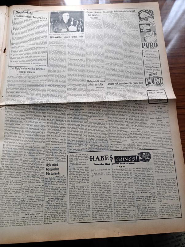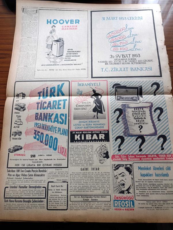 Vatan Gazetesi - 18 Şubat 1953 - Ahmet Emin Yalman Köşe Yazısı - Sait Bilgiç'in Dün Mecliste Çevirmek İstediği Manevra - Milletvekilleri Bütçeyi Tenkid Ettiler - Malatya Suikast Davasında Bir Sanık Serbest Bırakıldı - Büyük Doğu Gazetesi - Japon Güreş Takımı Ankara'da 7 1 Yenildi - Türkiye'nin NATO'ya Girişinin Yıldönümü - Eisenhower İlk Basın Toplantısını Yaptı - Ankara Ve Çarşamba'da Dün Çaylar Taştı - Kore'de İki Türk Erinin Kahramanlığı - Kadınlar Tekkesi Yazan Refik Halid Karay Yazı Dizisi - Hasan Refik Ertuğ Köşe Yazısı - Hoş Memo Karikatür - Japon Güreş Takımı - İsrail'deki Ruslar Ayrılıyor - Pariste Günün En Büyük Sanat Hadisesi İdil Biret'in Konseri - Türkiye Grekoromen Birincilikleri - Habeş Güneşi Yazı Dizisi - Türk Ticaret Bankası - Hoover Çamaşır Makinesi - Reosil Öksürüğü Keser - Pigal Naylon Çorapları - İstanbul Ankara İzmir Radyosu Programı - Haşim Mardin'e Ait Raman Gemisi Bremen'den Kaçarken Yakalandı - Hastalanan Leyla Gencer'e Resimde Buket Veriliyor adlı eser, Kitap > Süreli Yayınlar > Gazeteler > Türkiye > Genel > Günlük kategorisinde İkinci El olarak satıştadır.