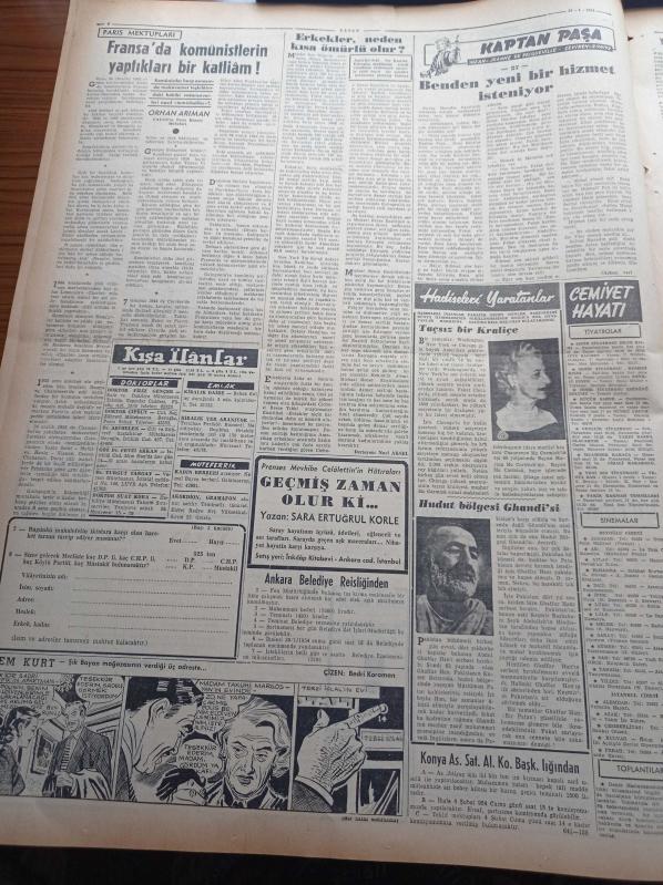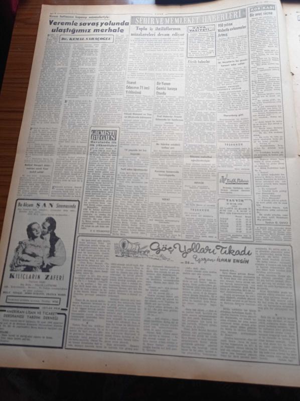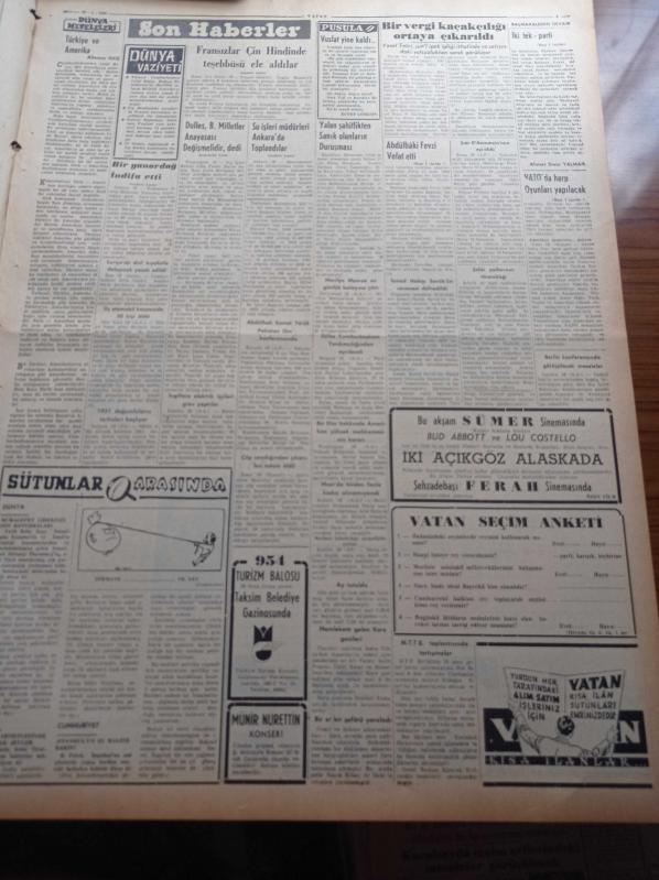 Vatan Gazetesi - 19 Ocak 1954 - Celal Bayar İngiltere'ye Vardı - Yabancı Sermaye Tasarısı Kanunlaştı - Migros Teşkilatı Kurucusu Duttweiler Vali Fahrettin Kerim Gökay İle Görüştü - Fırıncılar 31 Ocak'tan Sonra Ekmek Pişirmeyecekmiş - Abdülbaki Fevzi Vefat Etti - İş İdaresi Enstitüsü Kurulması Hazırlığı - Münir Nurettin Selçuk'un Bu Geceki Konseri Tehir Edildi - Göç Yolları Tıkadı Yazan İlhan Engin Yazı Dizisi - Ay Tutuldu - NATO'da Harp Oyunları Yapılacak - Memlekete Gelen Kore Gazileri - Cem Kurt Çizen Bedri Koraman - Fransa'da Komünistlerin Yaptığı Bir Katliam - Çocuklar Sizin Köşeniz - Veba Yazan Albert Camus Yazı Dizisi - Oktay Akbal - Sabahat Erdemir İsimli Genç Kız Celal Bayar'a Hakaretten Sanık - A. B. C. Namı Altında Üç Milli Takım Kuruluyor - Doğubank - Şehir Tiyatrosu, Ahmet Emin Yalman tarafından kaleme alınmıştır. Vatan Gazetesi - 19 Ocak 1954 - Celal Bayar İngiltere'ye Vardı - Yabancı Sermaye Tasarısı Kanunlaştı - Migros Teşkilatı Kurucusu Duttweiler Vali Fahrettin Kerim Gökay İle Görüştü - Fırıncılar 31 Ocak'tan Sonra Ekmek Pişirmeyecekmiş - Abdülbaki Fevzi Vefat Etti - İş İdaresi Enstitüsü Kurulması Hazırlığı - Münir Nurettin Selçuk'un Bu Geceki Konseri Tehir Edildi - Göç Yolları Tıkadı Yazan İlhan Engin Yazı Dizisi - Ay Tutuldu - NATO'da Harp Oyunları Yapılacak - Memlekete Gelen Kore Gazileri - Cem Kurt Çizen Bedri Koraman - Fransa'da Komünistlerin Yaptığı Bir Katliam - Çocuklar Sizin Köşeniz - Veba Yazan Albert Camus Yazı Dizisi - Oktay Akbal - Sabahat Erdemir İsimli Genç Kız Celal Bayar'a Hakaretten Sanık - A. B. C. Namı Altında Üç Milli Takım Kuruluyor - Doğubank - Şehir Tiyatrosu adlı eser Türkçe dilindedir.