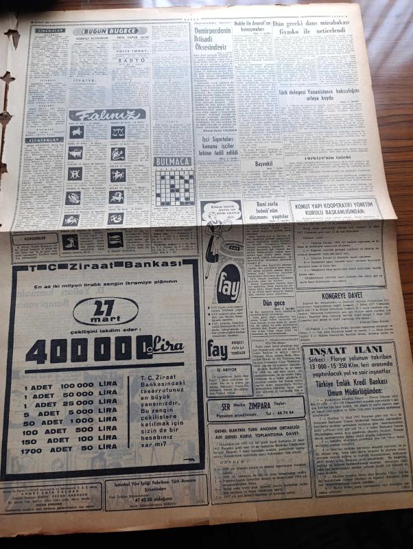 Vatan Gazetesi - 19 Şubat 1957 - Demirperdenin İktisadi Öksesindeyiz Yazan Ahmet Emin Yalman Köşe Yazısı - Türk Başdelegesi Selim Sarper Vesikalara Dayanarak Yaptığı Bir Konuşmada Yunanistan'ın Haksızlığını Ortaya Koydu - Maestro Toscanini'nin Cenazesinde Leyla Gencer Mersiye Okudu - Başvekil Adnan Menderes Bir Amerikan Radyosunda Konuştu - Meşhur Piyanist Joseph Hofman Öldü - Ahmet Mithat Efendi'nin Bir Romanı Musullu Süleyman Sadeleştiren Behçet Necatigil Yazı Dizisi - Troleybüs Pangaltı Ve Yenikapı Arası İşleyecek - Sinema Kulüpleri Yazan Salah Birsel - Çanakkale Türk'ün Kahramanlık Destanı Yazan Alan Moorehead Yazı Dizisi - Berlin Güzeli 21 Yaşındaki Victoria Berger Oldu - Marilyn Monroe'nun Kocası Suçlu Görüldü - Reşat Nuri Güntekin İçin Yazan Ruşen Eşref Ünaydın Yazı Dizisi - Dünya Nelere Gülüyor Karikatür - 1001 Gece Masalları Hazırlayan Suat Taşer Yazı Dizisi - Batakhane İnsanları Yazan Adnan Veli Yazı Dizisi - Futbolda Avrupa Grubuna Alındık - Yüzücü Murat Güler adlı eser, Kitap > Süreli Yayınlar > Gazeteler > Türkiye > Genel > Günlük kategorisinde İkinci El olarak satıştadır.