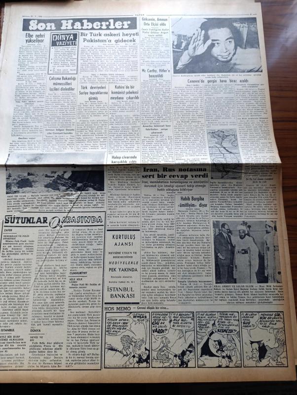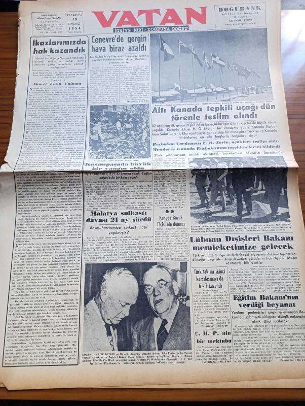 Vatan Gazetesi - 19 Temmuz 1954 - Ahmet Emin Yalman Köşe Yazısı - Cenevre'de Gergin Hava Biraz Azaldı - Altı Kanada Tepkili Uçağı Dün Törenle Teslim Alındı - Malatya Suikasti Davası 21 Ay Sürdü - Vatan Gazetesi Başyazarı Ahmet Emin Yalman'a Yapılan Suikastin Davası - Lübnan Dışişleri Bakanı Alfred Nakkaş Memleketimize Gelecek - Milli Eğitim Bakanı Celal Yardımcı'nı Verdiği Beyanat - Denizde İsyan Yazan Herman Wouk Yazı Dizisi - Unkapanı Köprüsü De Bozuldu - Seçmen Kütükleri Ay Sonuna Kadar Tamamlanacak - McCarthy Hitler'e Benzetildi - İran Rus Notasına Sert Cevap Verdi - Türk Devriyeleri Suriye Topraklarına Girmiş - General Ali Fuat Cebesoy'un Siyasi Hatıraları Yazı Dizisi - Avrupalı Kralların Aylıkları - Tarsus Vapuru Yolcuları Havana'da Güzel Vakit Geçirdiler - Bu Yerin Ötesinde Yazan Cronin Yazı Dizisi - Uçan Otomobil İcad Edildi - Almanya Bugünün Sürprizi Ve Yarının Favori Takımıdır - Dünyanın En İyi On Futbolcusu - Yüzücü Doğan Şahin Yeni Türkiye Rekoru Kırdı - Fenerbahçe adlı eser, Kitap > Süreli Yayınlar > Gazeteler > Türkiye > Genel > Günlük kategorisinde İkinci El olarak satıştadır.