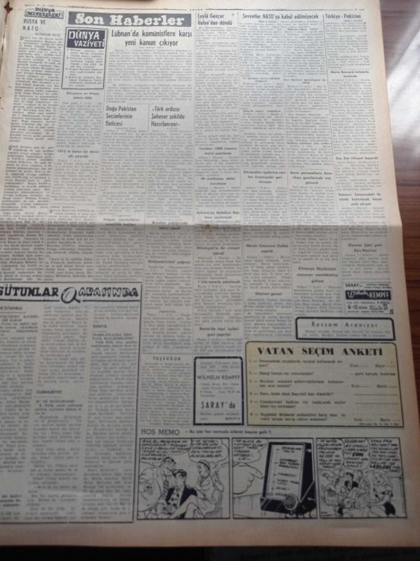 Vatan Gazetesi - 2 Nisan 1954 - Demokrat Parti İstanbul Adaylarının İhtilafı Devam Ediyor - Dolmabahçe Sarayındaki Basın Balosu İçin İtalya'dan Gelen Yıldızlar - İtalyan Sinema Yıldızı Yvonne Sanson - Ankara Eski Belediye Başkanı Atıf Benderlioğlu İsnatları Reddediyor - Ramideki Göçmen Evleri Hakkında - Dumlupınar Şehitleri Anılacak - Teknik Okulundan 825 Öğrenci Grev Halinde - Ticaret Bakanı Fethi Çelikbaş - Migros'un Mukavelesi Hazırlanıyor - Sovyetler NATO'ya Kabul Edilmeyecek - Teknik Okulundan 825 Öğrenci Grev Halinde - Profesör Fuat Köprülü Kıbrıs'a Dair Görüşünü Açıkladı - Demokrat Parti İstanbul Adaylarından Aleksandr Haçopulos - Brezilya Plajlarında Bikini Yasak - Artistler Tiyatroyu Kapatıp Turneye Çıkmak İstiyor - Bu Yıl Bahar Bayramı Parlak Surette Kutlanacak - Soprano Leyla Gencer İtalya'dan Döndü - General Ali Fuat Cebesoy'un Siyasi Hatıraları Yazı Dizisi - Dünyanın En Çok Kullanılan İlacı Aspirin - Jigolo Yazan Daniel Harper Yazı Dizisi - Beşiktaş Takımı, Ahmet Emin Yalman tarafından kaleme alınmıştır. Vatan Gazetesi - 2 Nisan 1954 - Demokrat Parti İstanbul Adaylarının İhtilafı Devam Ediyor - Dolmabahçe Sarayındaki Basın Balosu İçin İtalya'dan Gelen Yıldızlar - İtalyan Sinema Yıldızı Yvonne Sanson - Ankara Eski Belediye Başkanı Atıf Benderlioğlu İsnatları Reddediyor - Ramideki Göçmen Evleri Hakkında - Dumlupınar Şehitleri Anılacak - Teknik Okulundan 825 Öğrenci Grev Halinde - Ticaret Bakanı Fethi Çelikbaş - Migros'un Mukavelesi Hazırlanıyor - Sovyetler NATO'ya Kabul Edilmeyecek - Teknik Okulundan 825 Öğrenci Grev Halinde - Profesör Fuat Köprülü Kıbrıs'a Dair Görüşünü Açıkladı - Demokrat Parti İstanbul Adaylarından Aleksandr Haçopulos - Brezilya Plajlarında Bikini Yasak - Artistler Tiyatroyu Kapatıp Turneye Çıkmak İstiyor - Bu Yıl Bahar Bayramı Parlak Surette Kutlanacak - Soprano Leyla Gencer İtalya'dan Döndü - General Ali Fuat Cebesoy'un Siyasi Hatıraları Yazı Dizisi - Dünyanın En Çok Kullanılan İlacı Aspirin - Jigolo Yazan Daniel Harper Yazı Dizisi - Beşiktaş Takımı adlı eser Türkçe dilindedir.