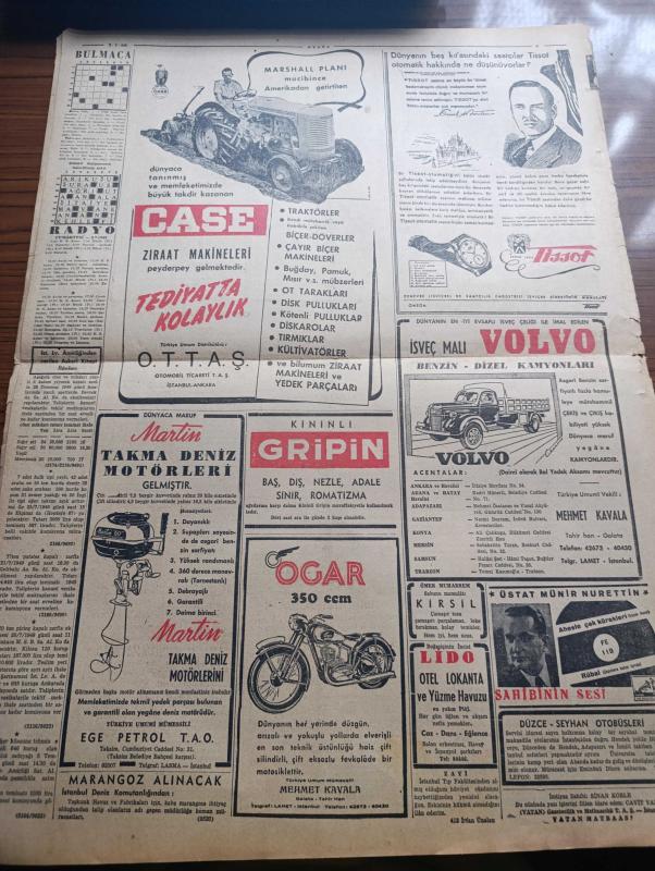 Vatan Gazetesi - 2 Temmuz 1949 - Suriye İntibaları 1 Yazan Ahmet Emin Yalman Köşe Yazı Dizisi - Ticaret Serbestisine Doğru İlerlemeler- Siyasi Havadaki Gerginlik Azaldı - Sabahattin Ali'nin Kartını Alan Talebeler Yakalandı - Neyzen Tevfik 70 Yaşında - Seçim Kanunu İlmî Heyeti - Marshall Planı İle Getirilen Ziraat Alet ve Makineleri - İslamistan - İngiliz Lirasının Kıymeti Ne Zaman Düşürülecek - Denizcilik Bayramı Dün Kutlandı - Osmanoğulları Yazan Feridun Fazıl Tülbentçi Yazı Dizisi - Pasolar Kaldırıldı - Cürüm Ve Ceza Yazan Avukat Mehmet Ali Sebük Köşe Yazısı - İzmir Ve Malatya'da Da Radyo İstasyonları Kurulacak - Adalet Bakanı Fuat Sirmen - Türkiye Tenis Birincilikleri - Bursa'ya Giden Futbolcular - Ankara Vapurundaki Kutlama Merasimi Yazan Ecvet Güresin - Tissot Saatleri - Case Ziraat Makineleri - Ogar Motosiklet - Üstad Münir Nurettin Selçuk Aheste Çek Kürekleri Plak adlı eser, Kitap > Süreli Yayınlar > Gazeteler > Türkiye > Genel > Günlük kategorisinde İkinci El olarak satıştadır.