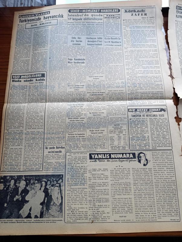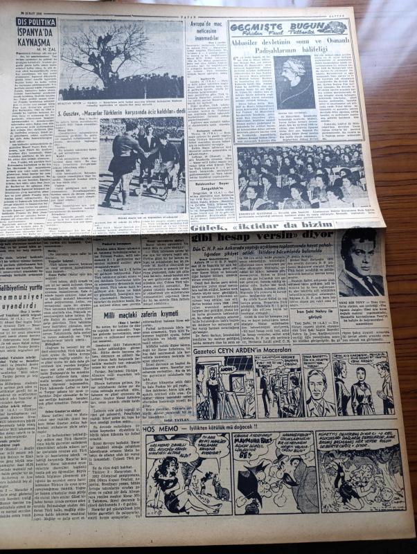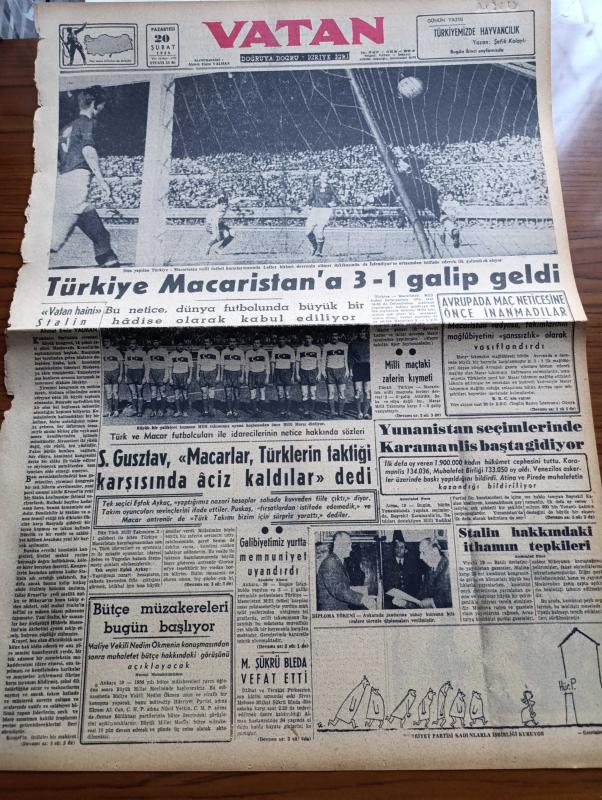 Vatan Gazetesi - 20 Şubat 1956 - Milli Takım Tarih Yazdı - Türkiye Macaristan'a 3 1 Galip Geldi - Vatan Haini Stalin Yazan Ahmet Emin Yalman Köşe Yazısı - S. Gusztav Macarlar Türklerin Taktiği Karşısında Aciz Kaldılar Dedi - İttihat ve Terakki Fırkasının Son Umumi Katibi Mithat Şükrü Bleda Vefat Etti - Yunanistan Seçimlerinde Karamanlis Başta Gidiyor - Yanlış Numara Yazan Lucille Fletcher Yazı Dizisi - İstanbul'da Günde 57 Köpek Öldürülüyor - Doğu Karadeniz'de Mısır Karaborsada - İşçi Bankası Kuruluş Hazırlıkları - Azerbaycan Kültür Derneğinin 8. Kültür Kongresi Toplandı - Geçmişte Bugün Yazan Feridun Fazıl Tülbentçi Yazı Dizisi - Abbasiler Devletinin Sonu Ve Osmanlı Padişahlarının Halifeliği - Kasım Gülek İktidar Da Bizim Gibi Hesap Versin Diyor - Gazeteci Ceyn Arden'in Maceraları - Yeni Bir Tony Curtis - Tülin Korman Yılın Sanatkarı Seçildi - Okuyucu Fikir Ve Şikayetleri - Tiyatro Tenkidleri Yazan Ayşe Nur - Cinsi Cazibe Bombası Diana Dors'un Giydiği Elbise - Televizyon Kaç Para adlı eser, Kitap > Süreli Yayınlar > Gazeteler > Türkiye > Genel > Günlük kategorisinde İkinci El olarak satıştadır.
