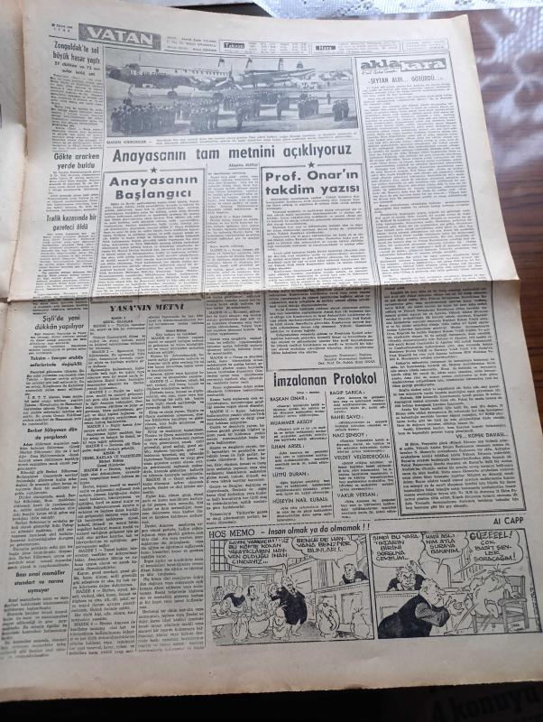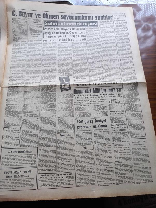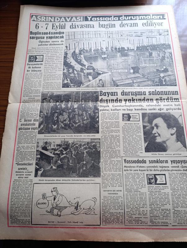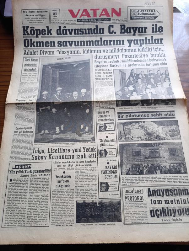 Vatan Gazetesi - 21 Ekim 1960 - Köpek Davasında Celal Bayar İle Nedim Ökmen Savunmalarını Yaptılar - Yüz Yıllık Türk Gazeteciliği Yazan Ahmet Emin Yalman Köşe Yazısı - Celal Bayar'ın Avukatı Milli Mücadeleden Bahsetmek İsteyince Başkan İle Aralarında Tartışma Oldu - Nedim Ökmen'in Avukatı Köpek Satışında Failin Celal Bayar Olduğunu Söyledi - Tavşancıl Civarında İki Askeri Keşif Uçağı Çarpıştı Bir Pilotumuz Şehit Oldu - Anayasanın Tam Metnini Açıklıyoruz - Profesör Sıddık Sami Onar'ın Takdim Yazısı - Şeytan Aldı Götürdü Yazan Emil Galip Sandalcı Köşe Yazısı - İki Resim Arasında 7 Fark - İstanbul Ankara Olayları Esbabı Mucibeli Tam Metni Veriyoruz - Noyan Amca Dert Dinliyor - Bugün Dört Milli Lig Maçı Var - 1961 Güreş Faaliyet Programı Açıklandı - Doğu Kupası Boks Maçlarını Kayseri Takımı Kazandı - Asrın Davası Yassıada Duruşmaları - Tarihi Duruşmaların Yapıldığı Mahkeme Salonunun Tepeden Görünüşü Fotoğraf adlı eser, Kitap > Süreli Yayınlar > Gazeteler > Türkiye > Genel > Günlük kategorisinde İkinci El olarak satıştadır.