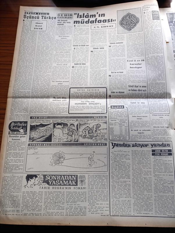 Vatan Gazetesi - 21 Mayıs 1958 - Kıbrıs'taki Rumlar İlhaktan Vazgeçtiler - Kıbrıs Valisi Sir Hugh Foot Dün Adaya Döndü - Kandilli Rasathanesi - Fransız Anayasasında Değişiklik Yapacak - İstanbul Vali Ve Belediye Reisi başkan Vekili Ethem Yetkiner - Atatürk İle İlgili Yeni Bir Film - Atatürk'ün Eski Bir Demeci Yüzünden Zafer Gazetesi Ulus'a Çattı - Suvat Ve Sarıyer Kaptanları Bugün Yargılanacak - Karaköy'de 87 Bina Daha Yıktırılıyor - Hukuk Fakültesi Anayasa Hukuku Profesörü Hüseyin Nail Kubalı Yılın Son Dersini Verdi - Sonradan Yaşamak Yazan Tarık Buğra Yazı Dizisi - Yandan Akıyor Yandan Yazan Adnan Veli Yazı Dizisi - İslam'da Laiklik - Üçüncü Türkçe Yazan Ahmet Kutsi Tecer - Nurcular İzmir Gazetelerine De Tehdit Mektupları Gönderdiler - Cannes Film Festivalinden Yazan Aydın Arzak - Burç Falı - Fenerbahçe Resmen Amerika'ya Çağrıldı - Bulmaca - Yılın Başarılı Kalecisi Özcan Arkoç Profesyonel Olmaya Karar Verdi - Galatasaray Lokomotif Yarın Karşılaşıyor - Lefter Bu Hafta Oynayacak adlı eser, Kitap > Süreli Yayınlar > Gazeteler > Türkiye > Genel > Günlük kategorisinde İkinci El olarak satıştadır.